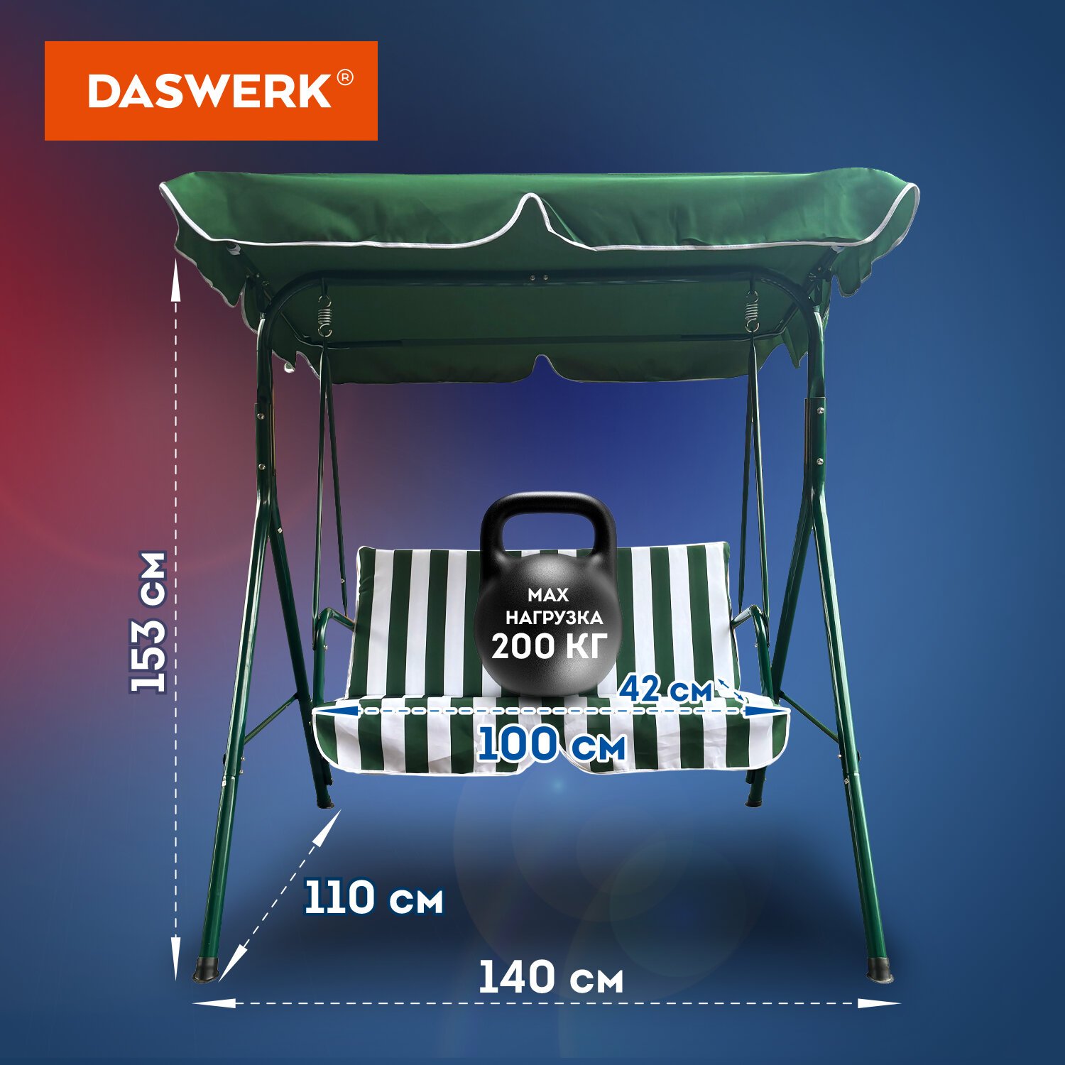Качели садовые DASWERK "RELAX SC-001", 2 места, Ш140хГ110хВ153, мягкое сиденье, зеленый/белый, 680050