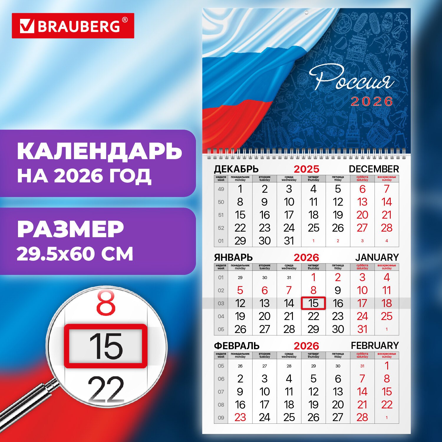 Календарь квартальный 2026г, 1 блока 1 гребень бегунок, мел.бум., BRAUBERG, Символика, 116746