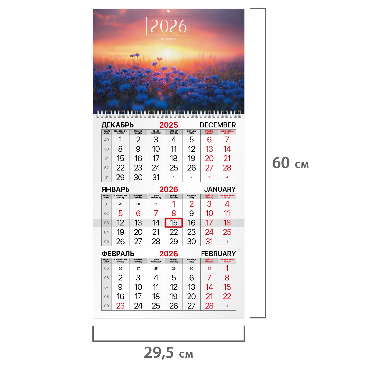 Календарь квартальный 2026г, 1 блока 1 гребень бегунок, мелованная бумага, BRAUBERG, Полевые цветы, 116751
