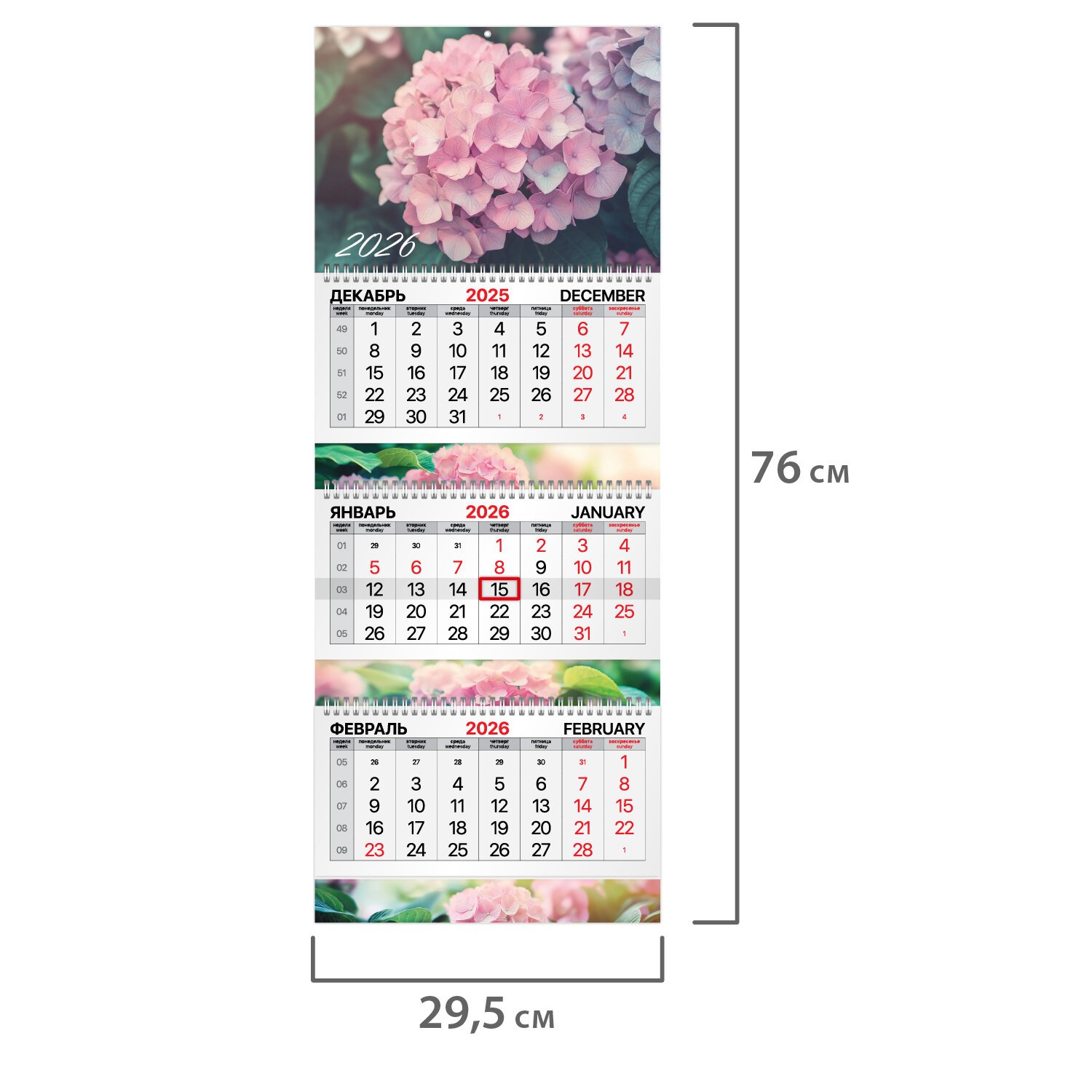 Календарь квартальный 2026г, 3 блока 3 гребня бегунок, мелованная бумага, BRAUBERG EXTRA, Цветы, 116826
