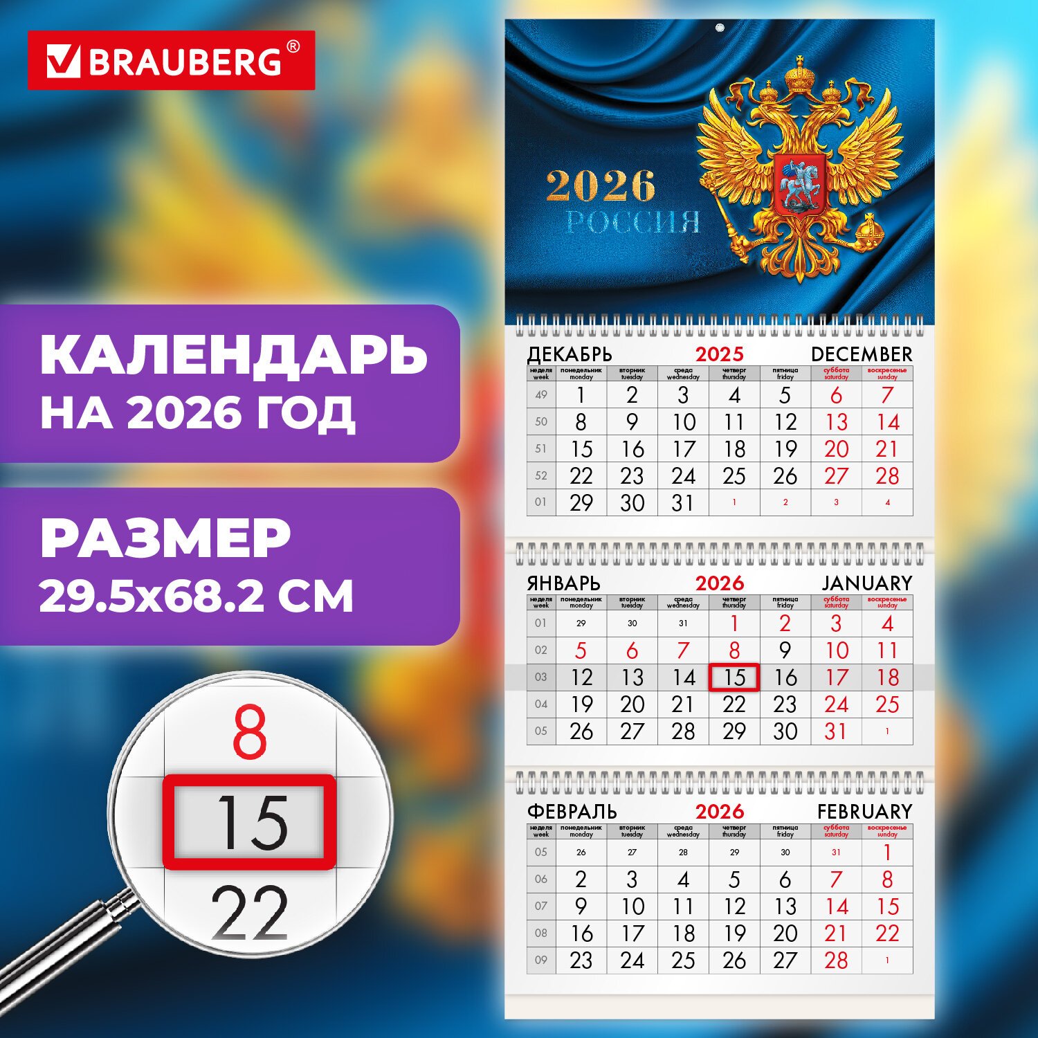 Квартальный календарь BRAUBERG "Герб России" предназначен для делового планирования.