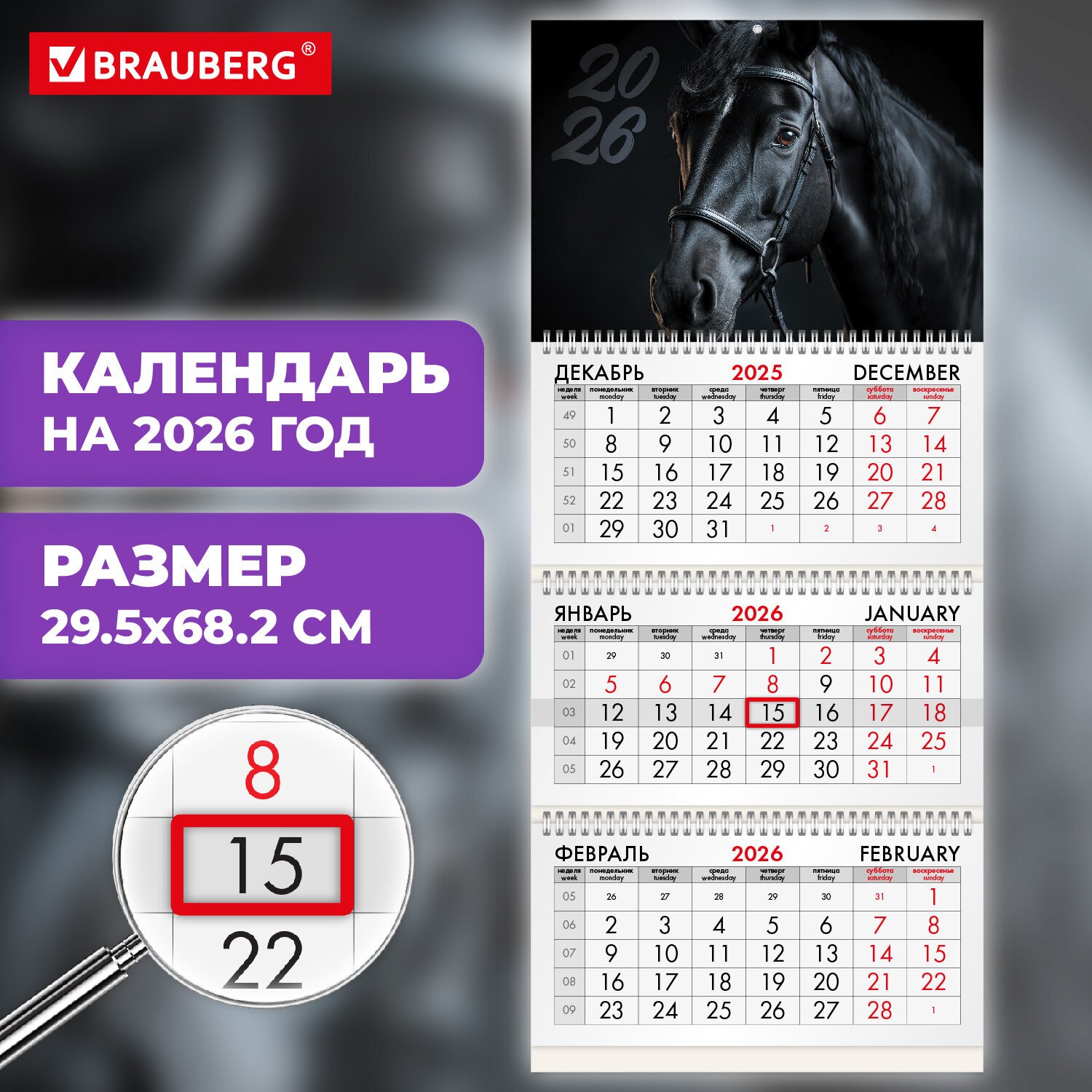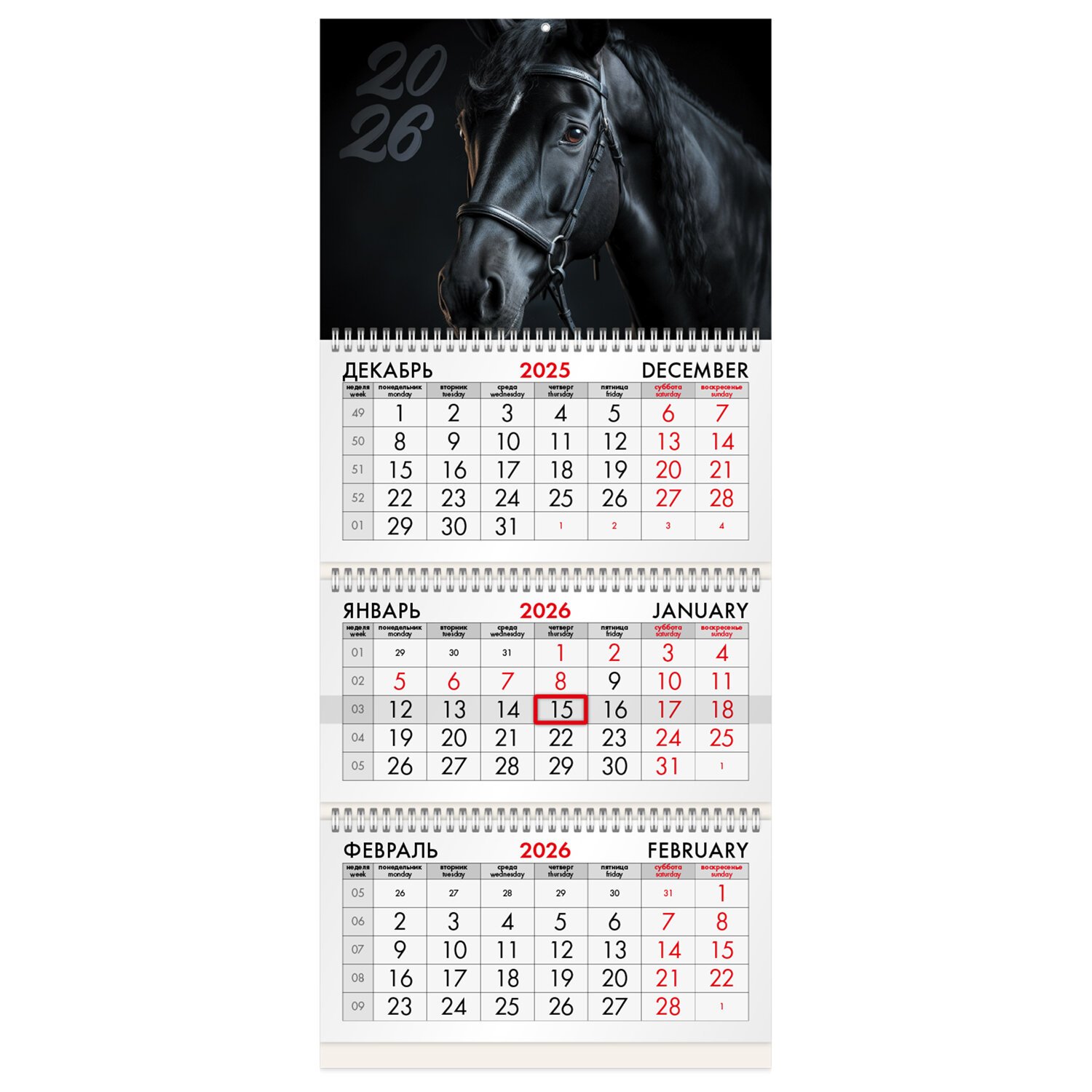 Календарь квартальный 2026г, 3 блока 3 гребня бегунок, мелованная бумага, BRAUBERG, Символ год, 116790