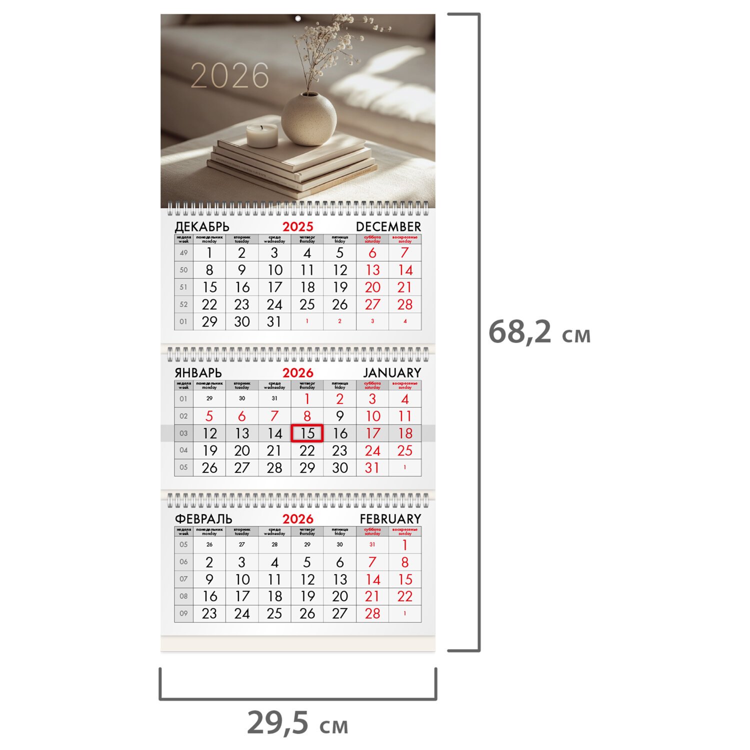 Календарь квартальный 2026г, 3 блока 3 гребня бегунок, мелованная бумага, BRAUBERG, Уют, 116804