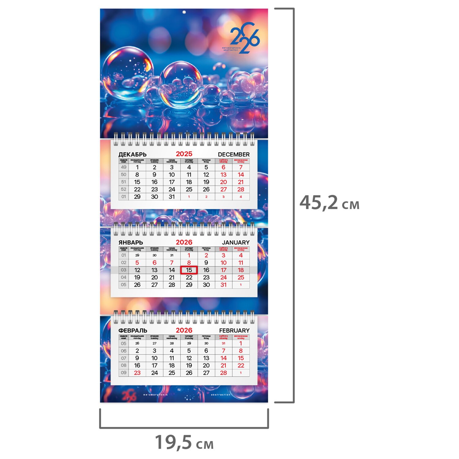 Календарь квартальный 2026г, 3 блока 3 гребня бегунок, офсет, BRAUBERG EXTRA MINI, Россия, 116783