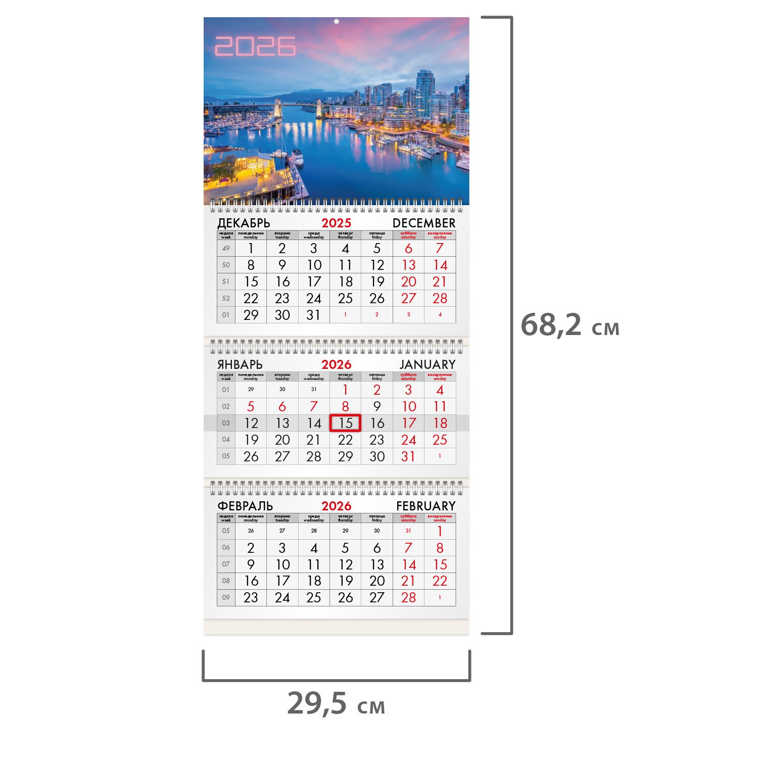 Календарь квартальный 2026г, 3 блока 3 гребня бегунок, офсет, BRAUBERG, Мегаполис, 116757