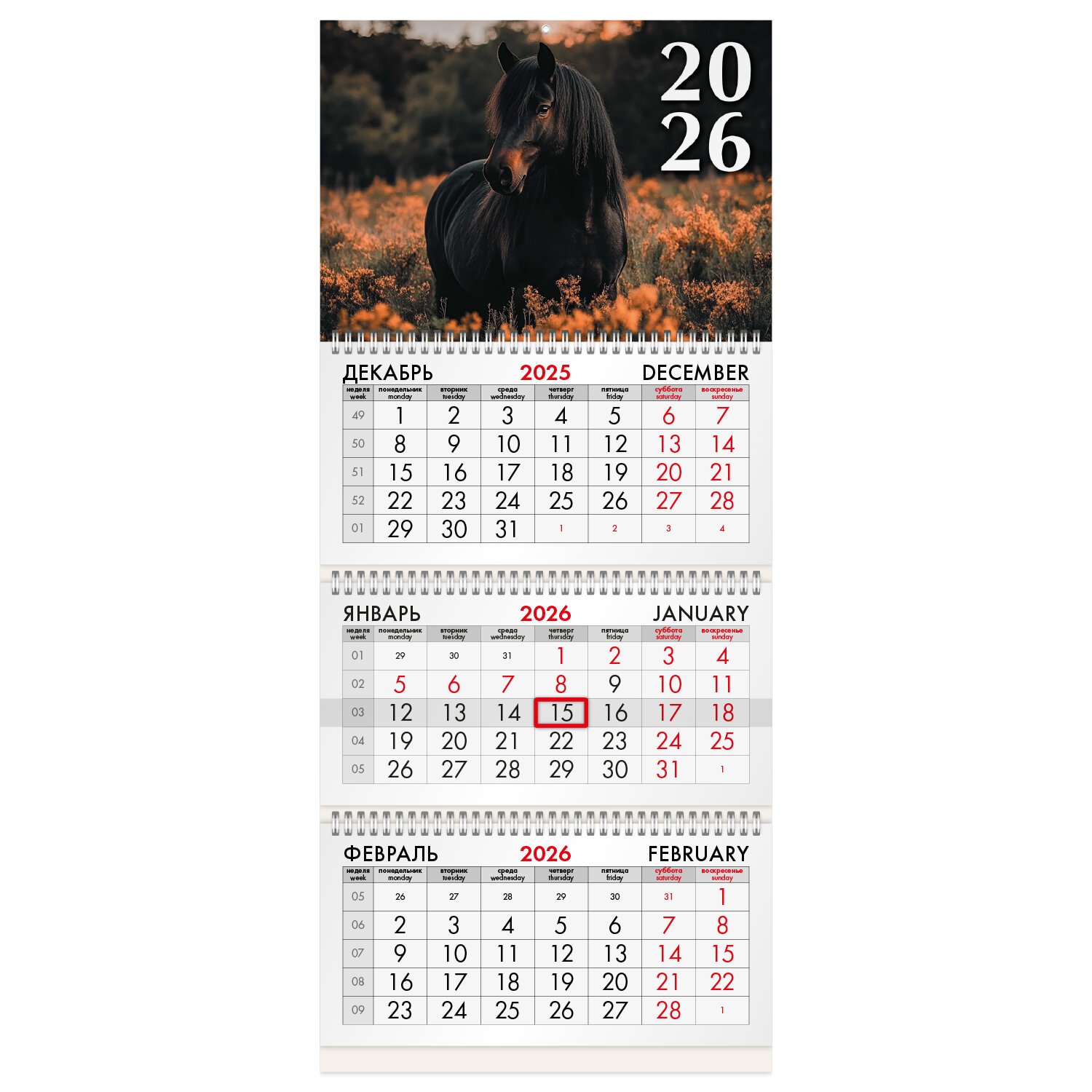 Календарь квартальный 2026г, 3 блока 3 гребня бегунок, офсет, BRAUBERG, Символ года 3, 116760
