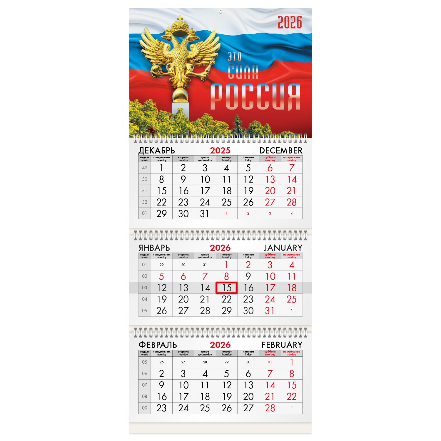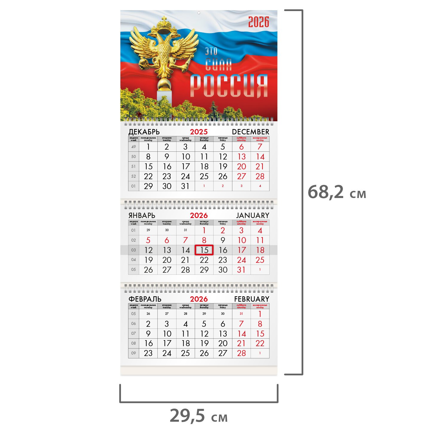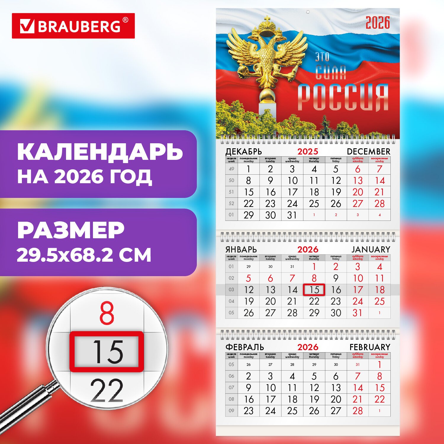 Календарь квартальный 2026г, 3 блока 3 гребня бегунок, офсет, BRAUBERG, Символика РФ2, 116755