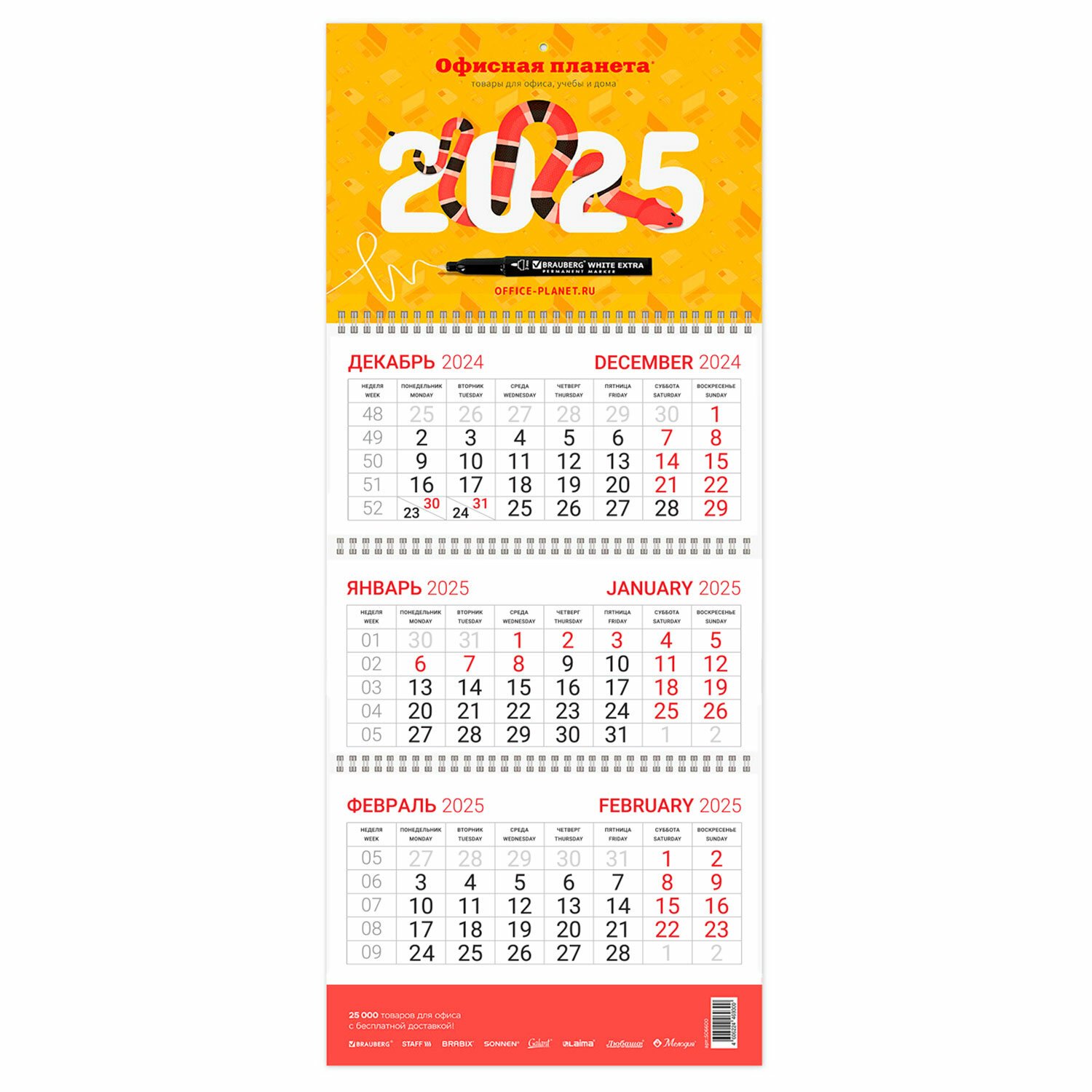 Календарь квартальный на 2025 г., корпоративный базовый, дилерский, ОФИСНАЯ ПЛАНЕТА