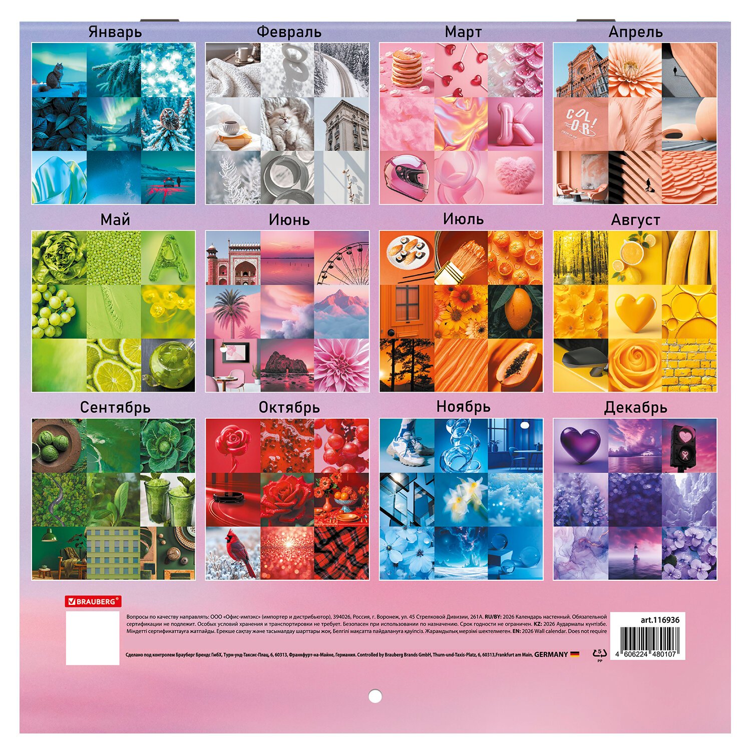 Календарь настенный перекидной 2026г, BRAUBERG, 12 листов, 28,5х28,5см, Калейдоскоп, 116936