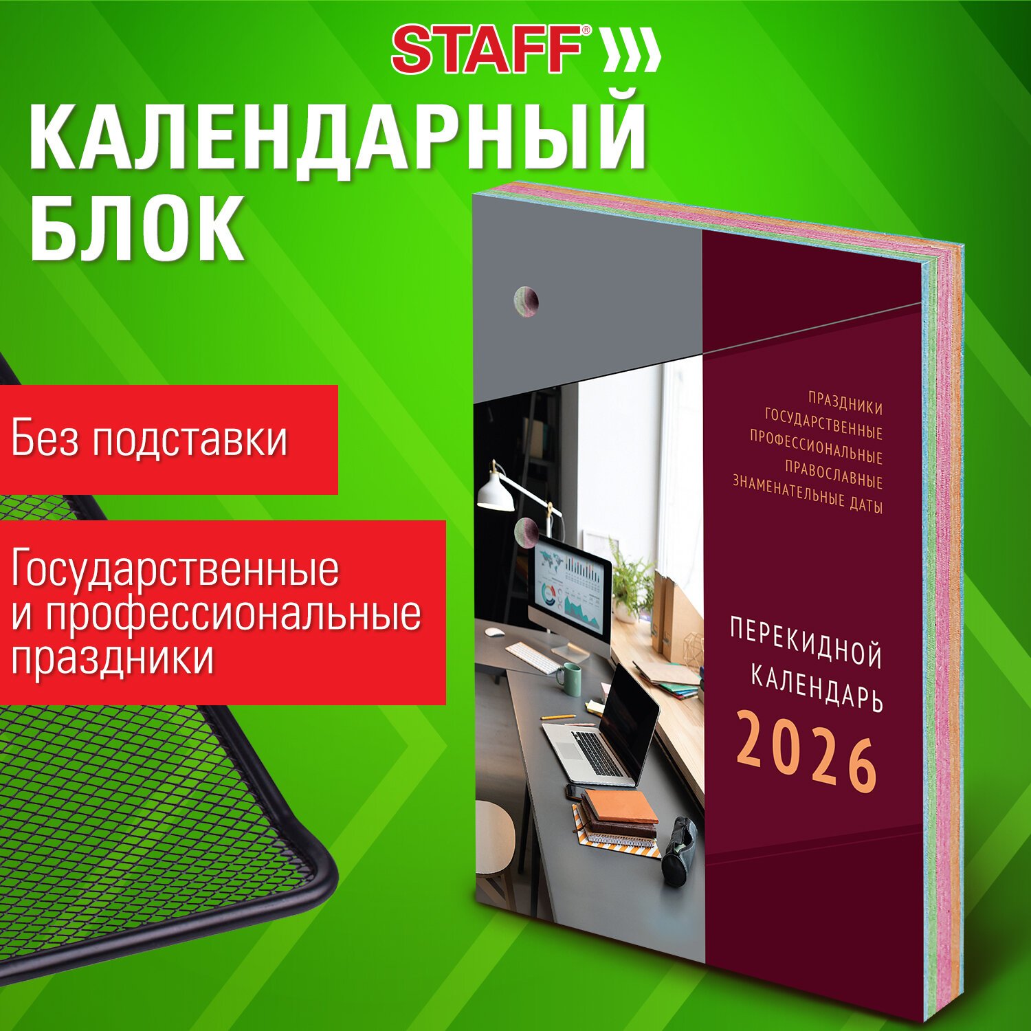 Календарь настольный перекидной 2026г, 160л, блок офсет, цветной, 2 краски, STAFF, ОФИСНЫЙ, 117432