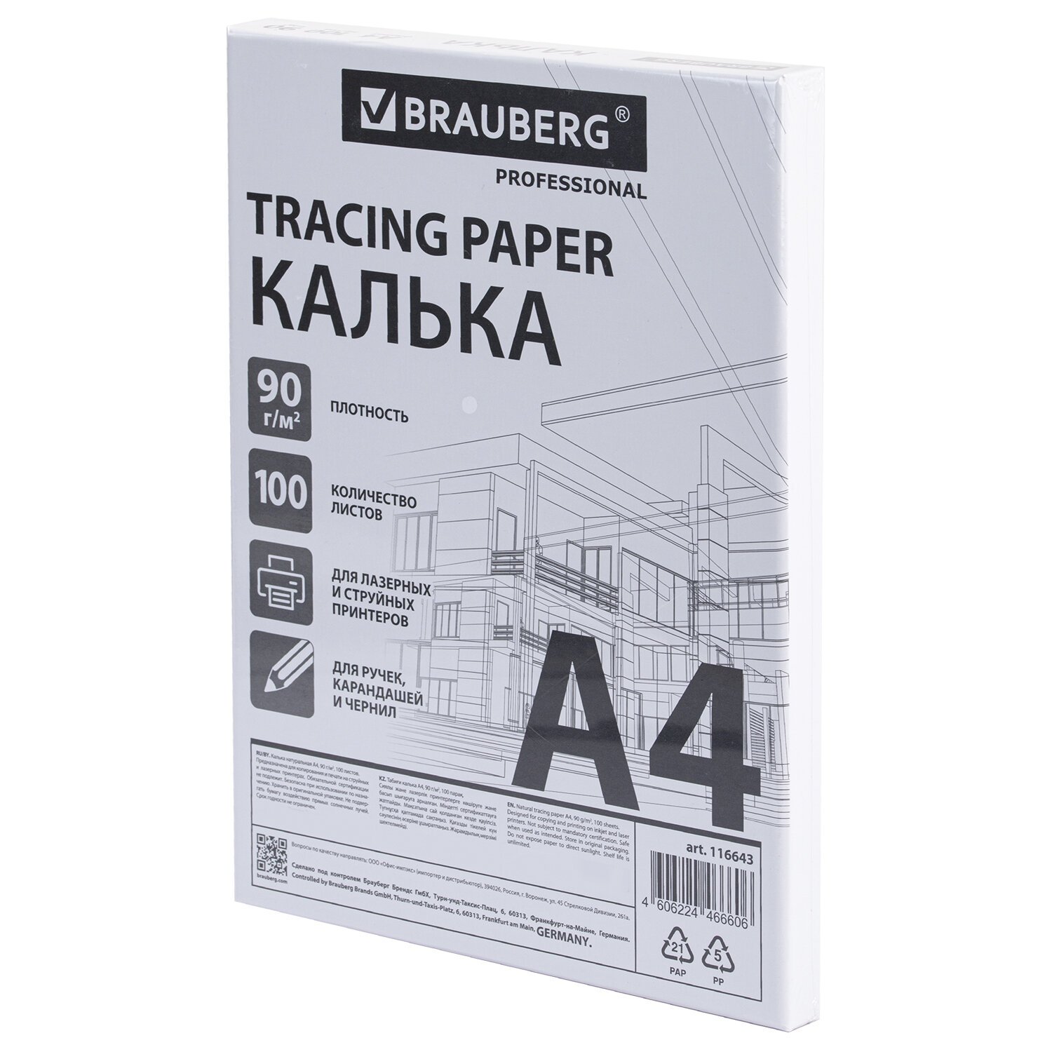 Калька в листах BRAUBERG предназначена для широкого круга задач, в том числе для профессионального использования. Подходит для печати на струйном и лазерном принтере, а также для рисования и черчения карандашами, ручками и чернилами.