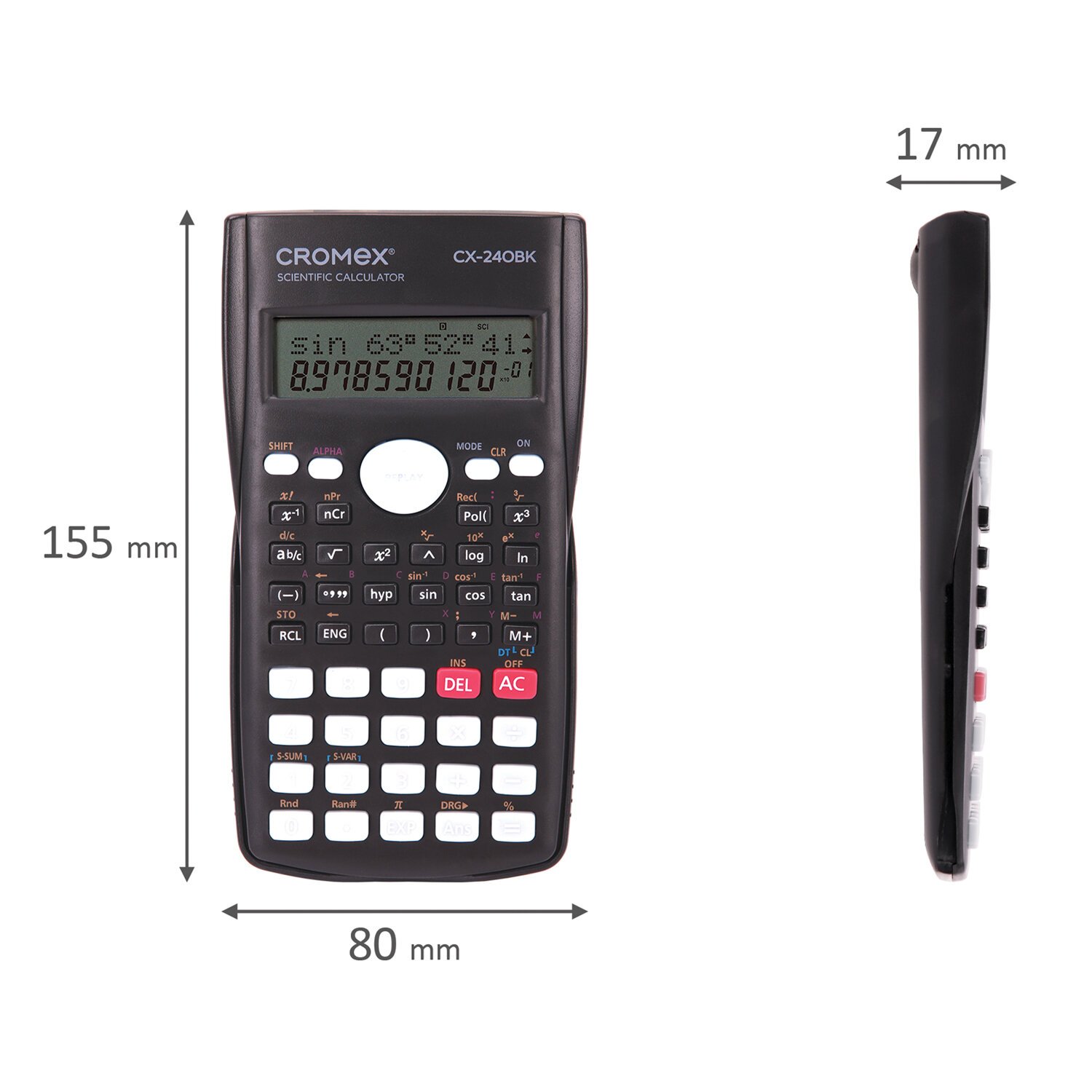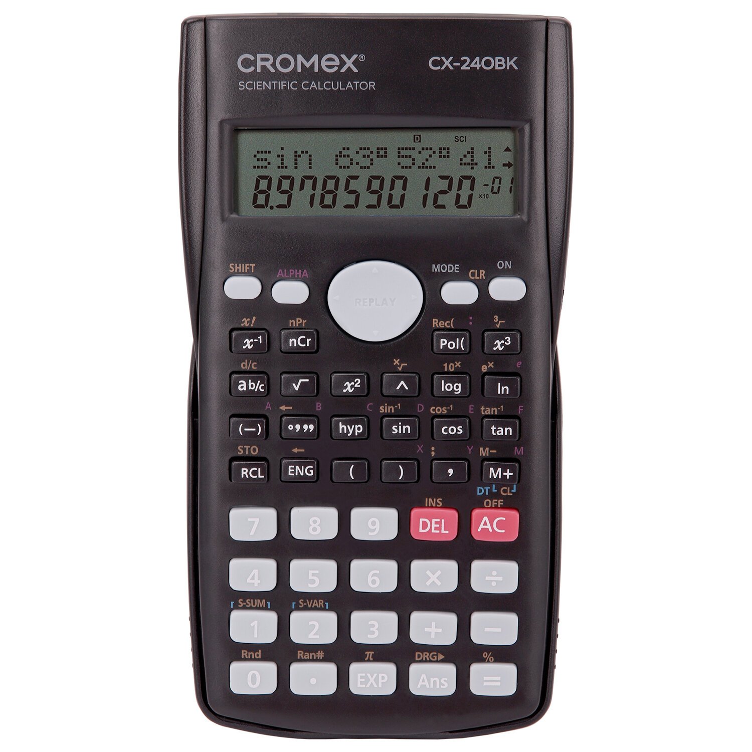 Непрограммируемый инженерный калькулятор CROMEX СX-240BK выполняет все основные вычисления, которые понадобятся школьникам на экзаменах и контрольных работах. Сертифицирован для использования на ЕГЭ и ОГЭ по физике, химии, географии.