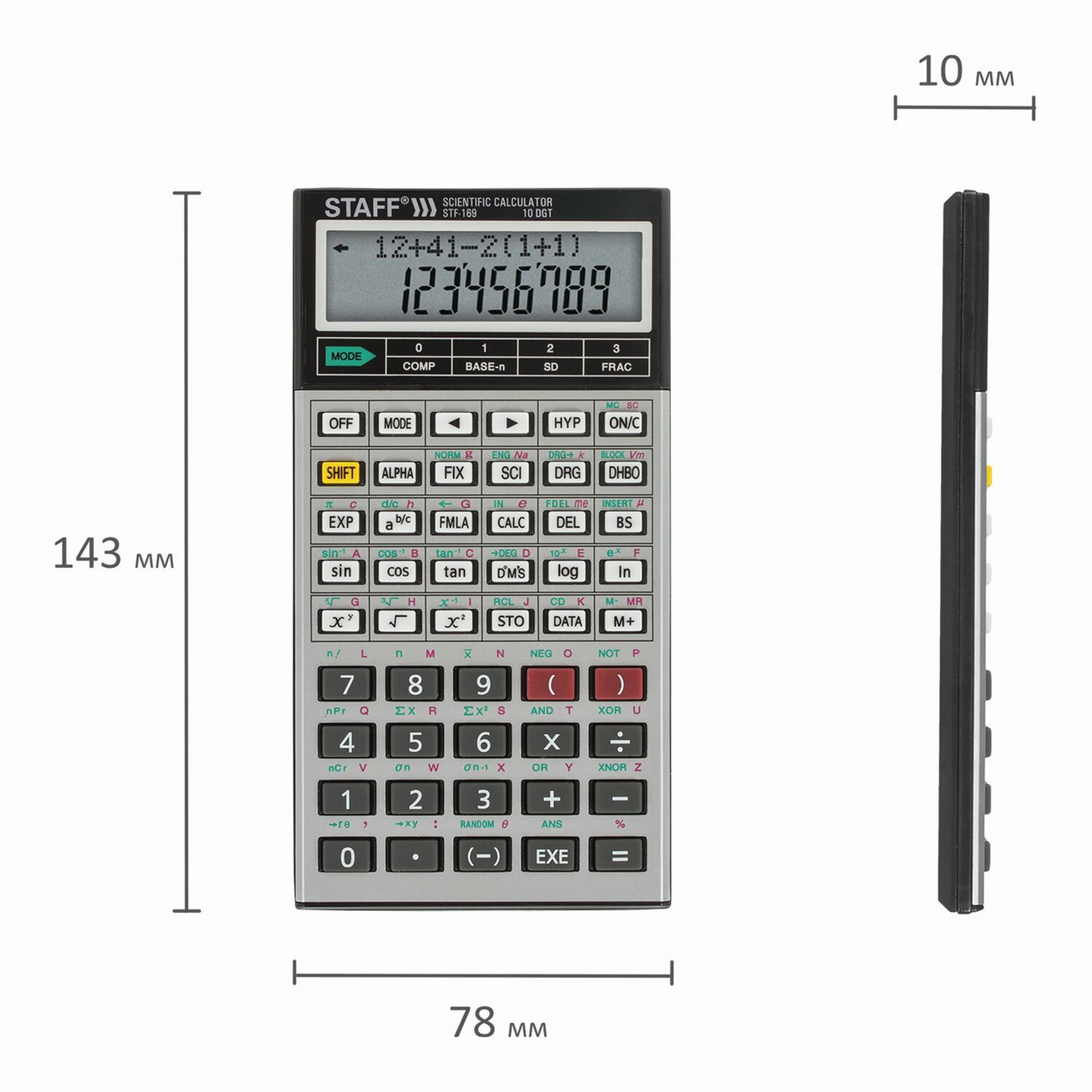 Калькулятор инженерный STAFF STF-169 (143х78 мм), 242 функции, 10+2 разрядов, 250138