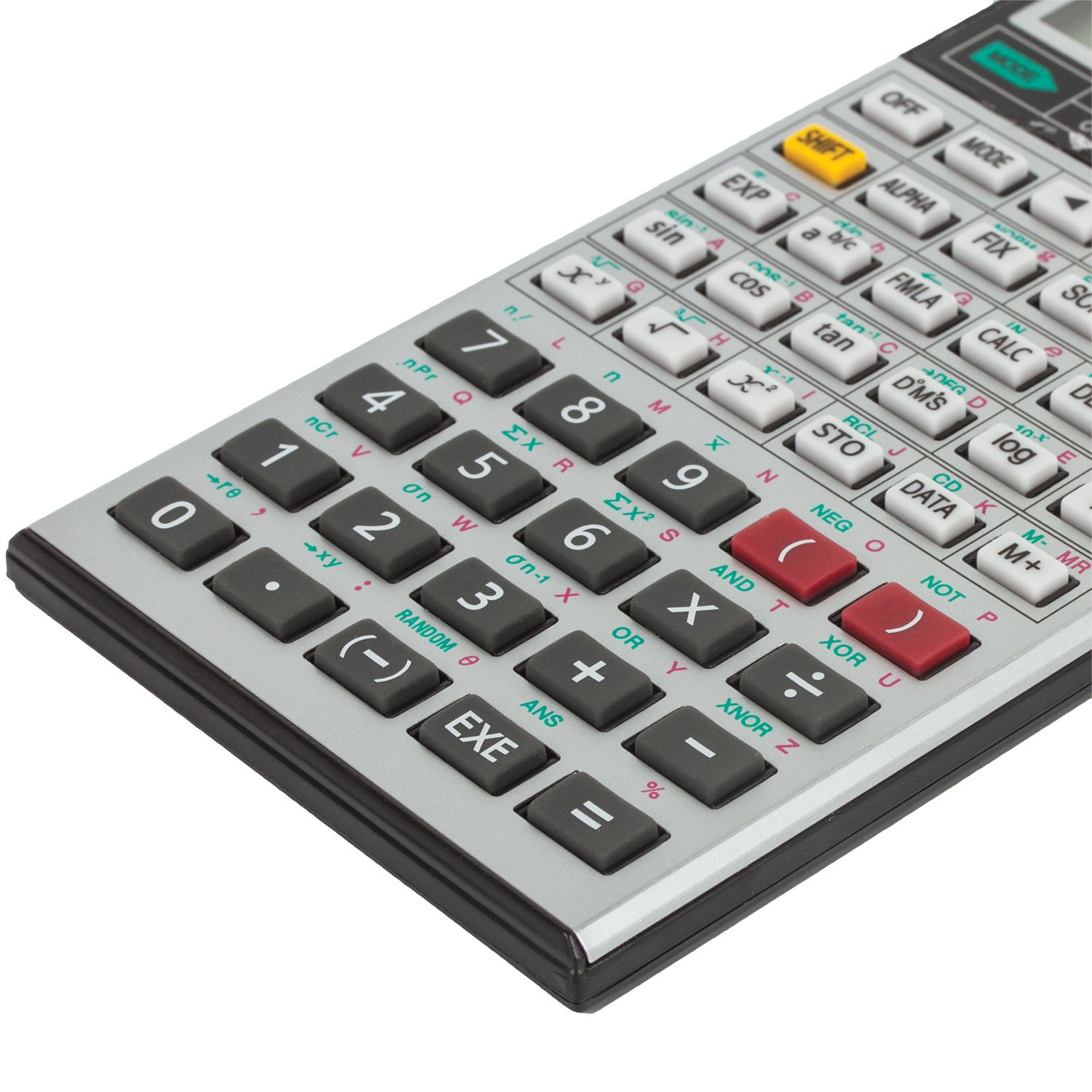 242 встроенные научные и статистические функции позволяют вычислять степени и квадратные корни, логарифмы и антилогарифмы, прямые и обратные тригонометрические функции. Устройство также осуществляет статистические расчёты, тригонометрические расчёты в градусах, радианах и градах. Калькулятор может переключаться между двоичной, восьмеричной и шестнадцатеричной системами исчисления. Вычислительная мощность калькулятора позволяет обрабатывать до шести уровней выражений в скобках. Калькулятор также позволяет сохранить в памяти одну формулу, заданную пользователем. На большом двустрочном дисплее одновременно отображаются заданные вычисления и их результат. Встроенный аккумулятор обеспечивает длительную работу устройства при любом освещении. Практичный чехол из ПВХ защищает калькулятор от грязи и случайного включения.