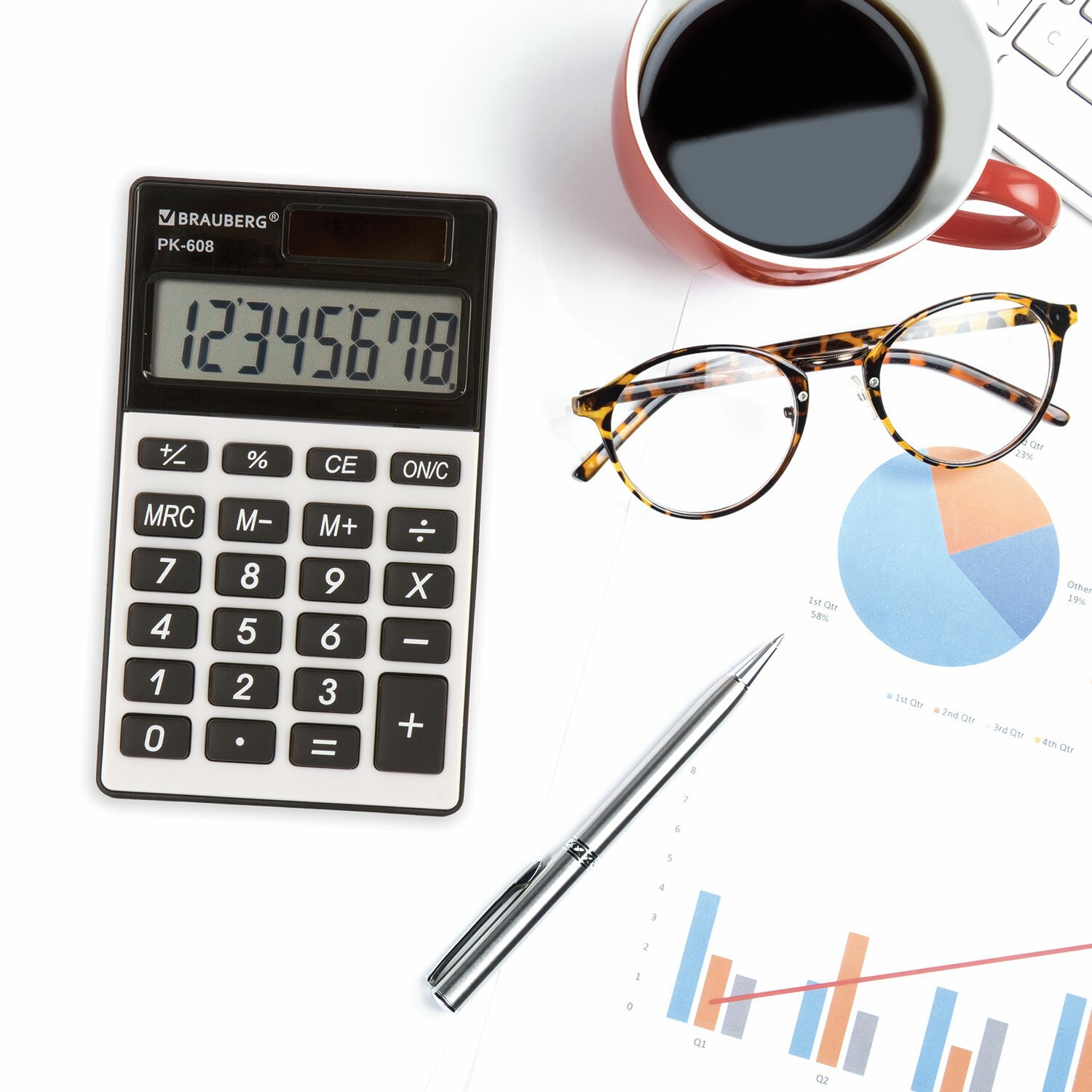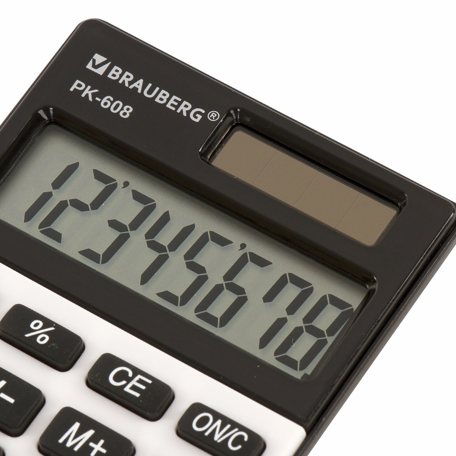 Карманный калькулятор BRAUBERG PK-608 - компактный, прочный и надежный. Его удобство оценят и взрослые и дети.