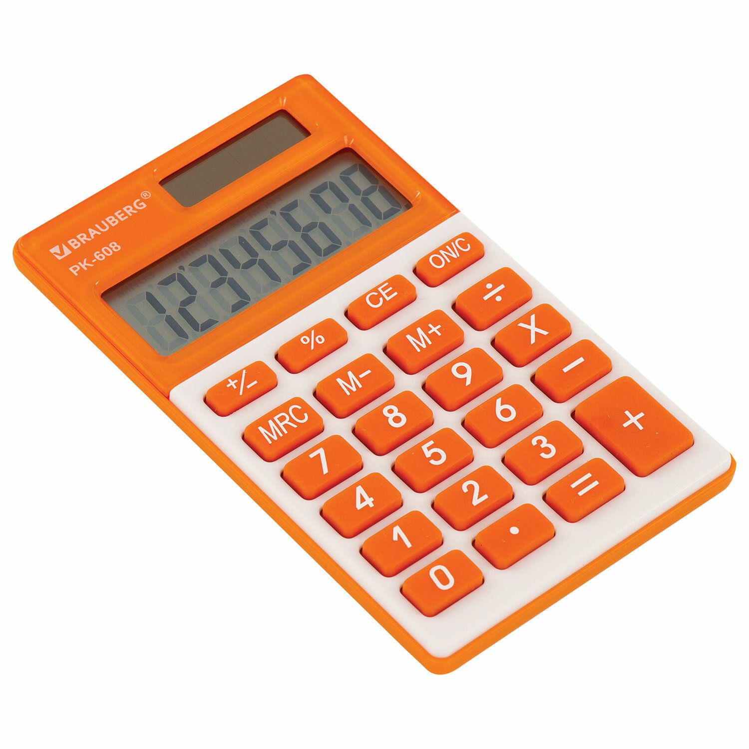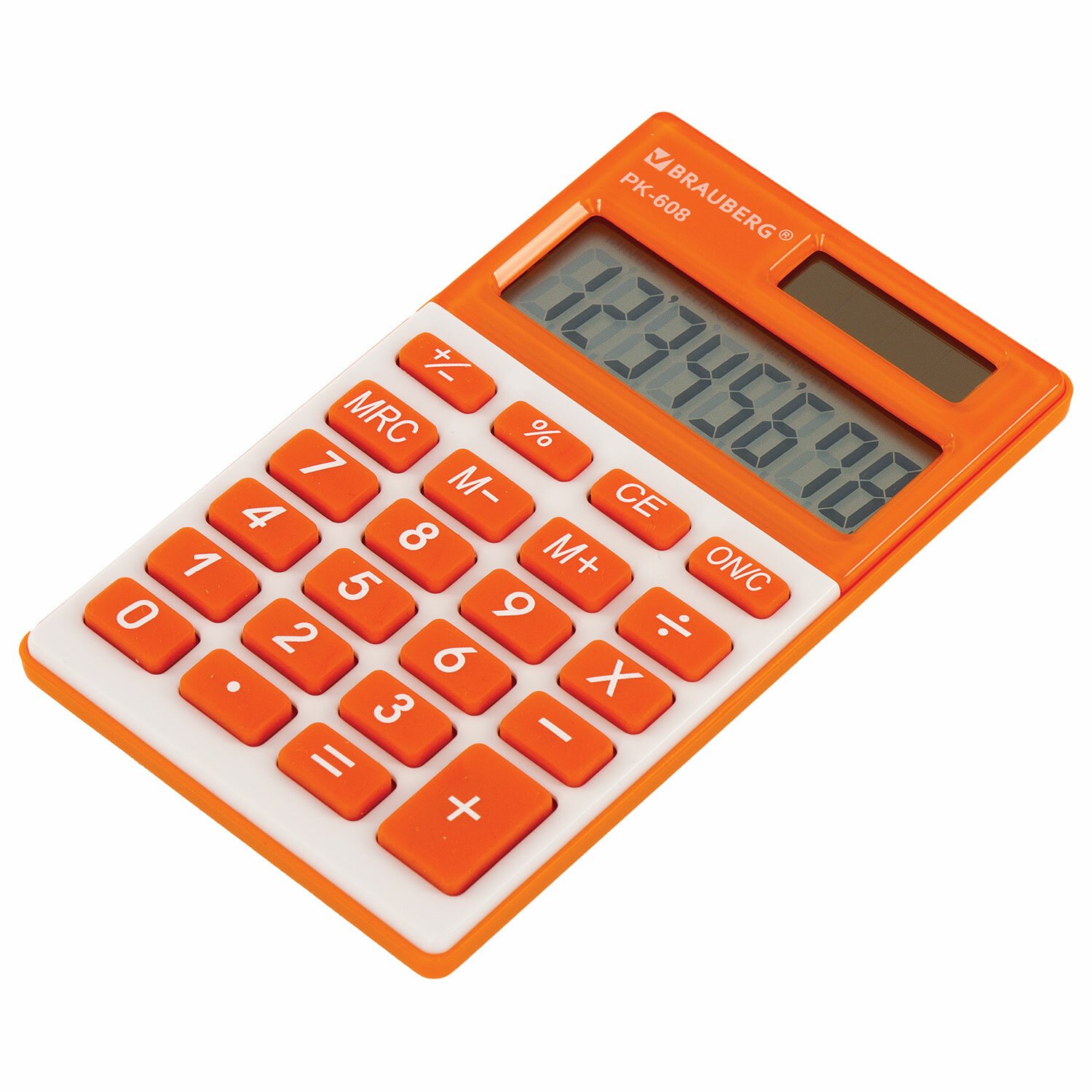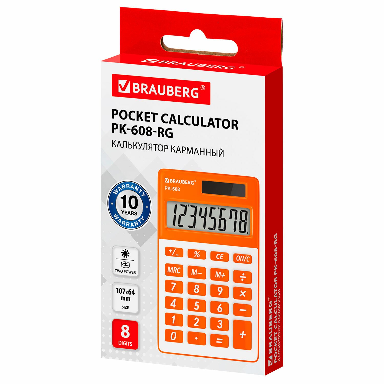 Калькулятор карманный BRAUBERG PK-608-RG (107x64 мм), 8 разрядов, двойное питание, ОРАНЖЕВЫЙ, 250522