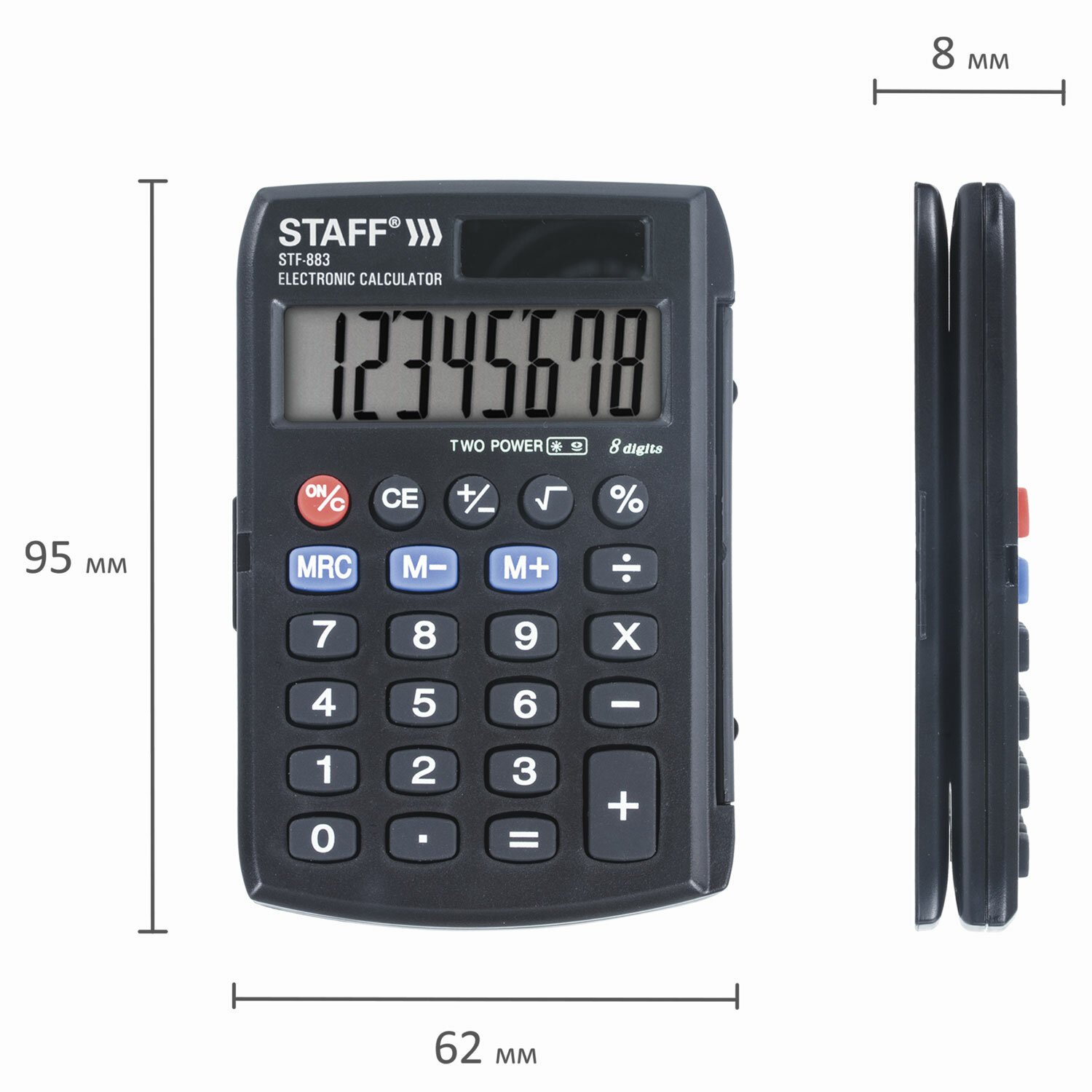 Калькулятор карманный STAFF STF-883 (95х62 мм), 8 разрядов, двойное питание, 250196