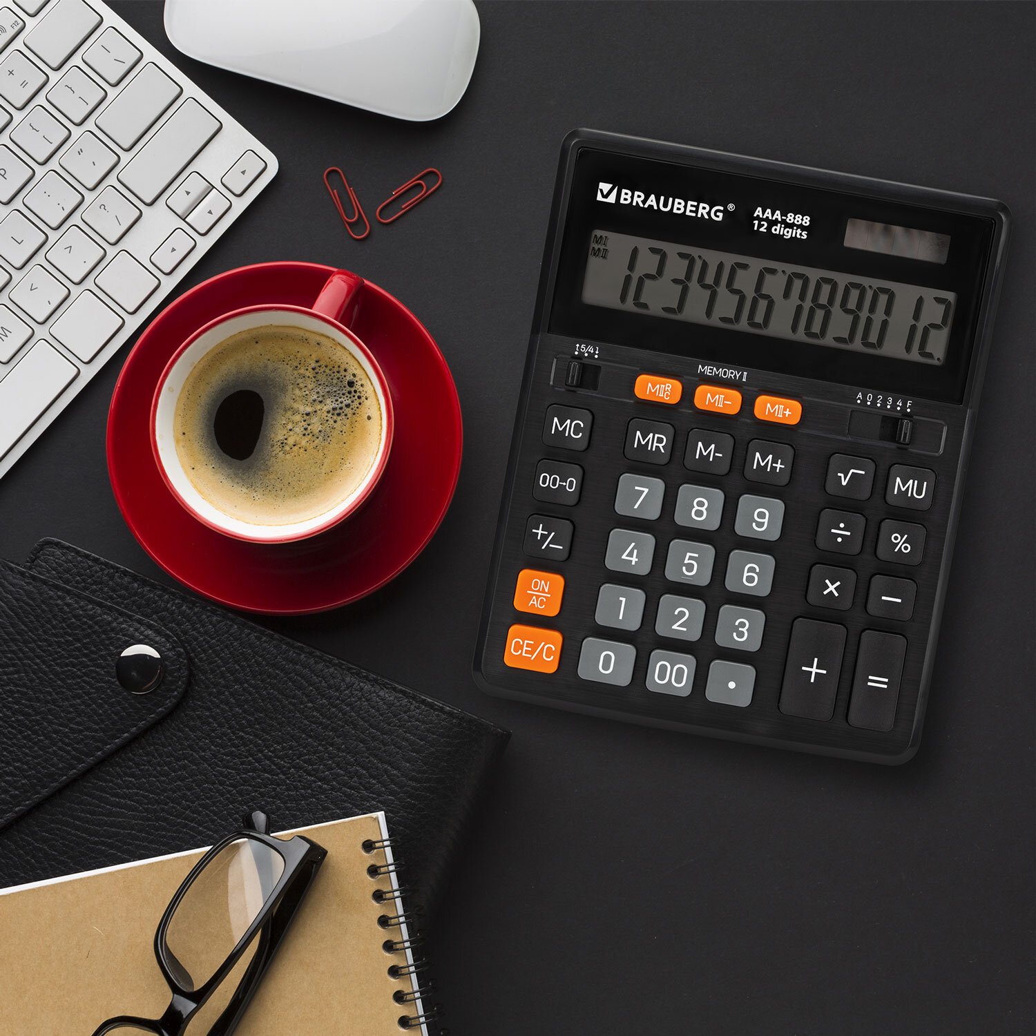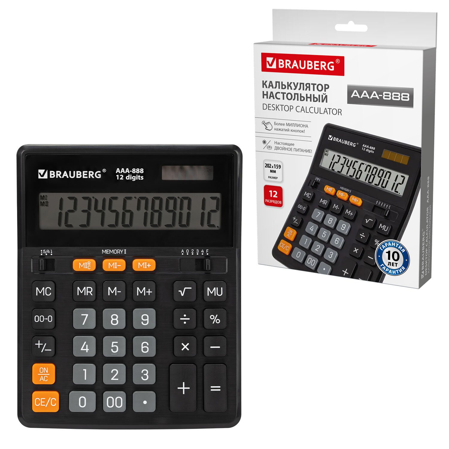 Калькулятор настольный BRAUBERG AAA-888 (202x159 мм),12 разрядов, ЧЕРНЫЙ, двойное питание, 273981