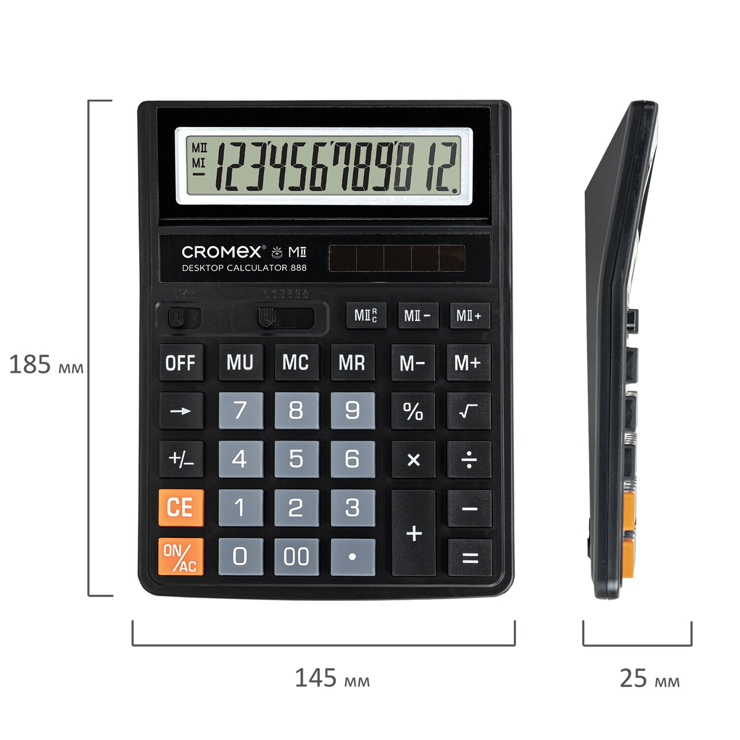 Калькулятор настольный CROMEX 888 (185x145 мм), 12 разрядов, ЧЕРНЫЙ, 271728