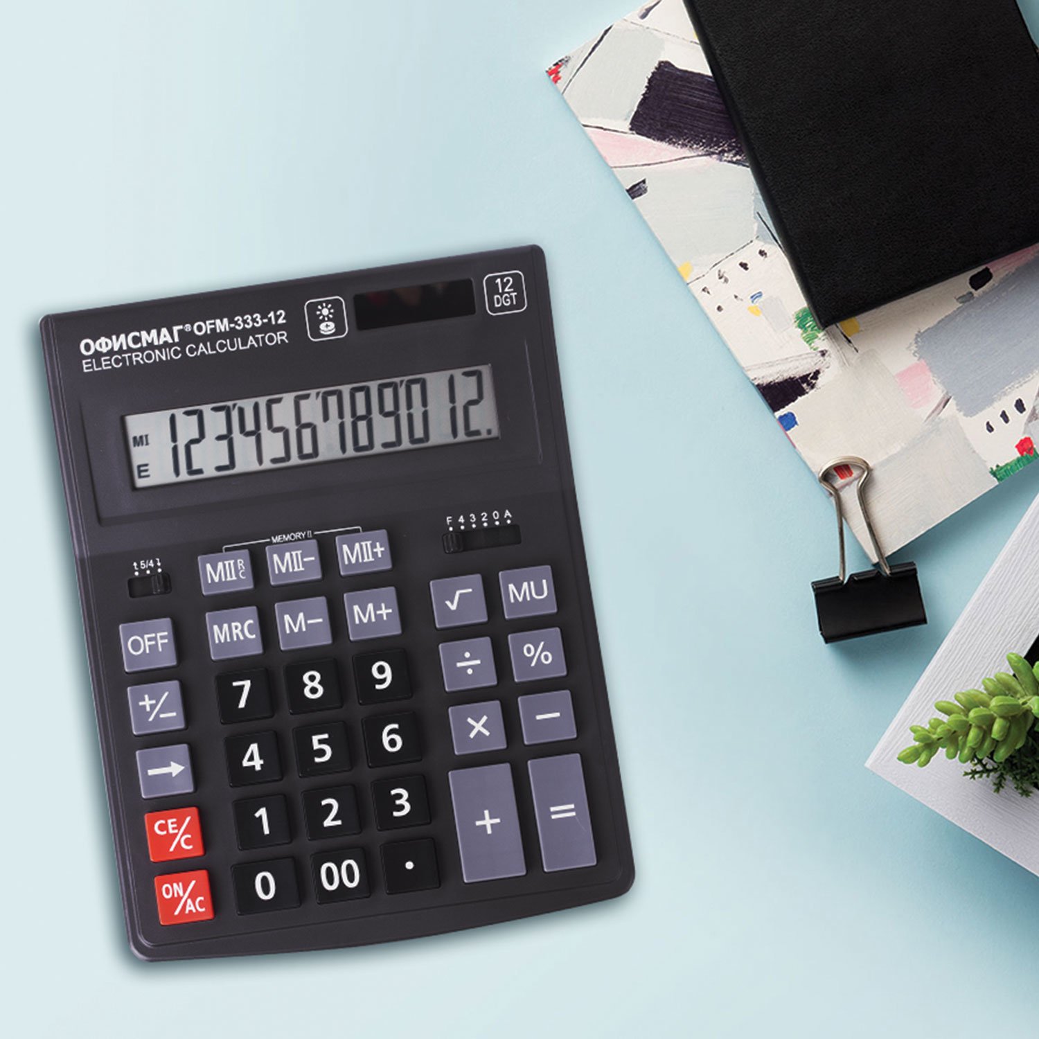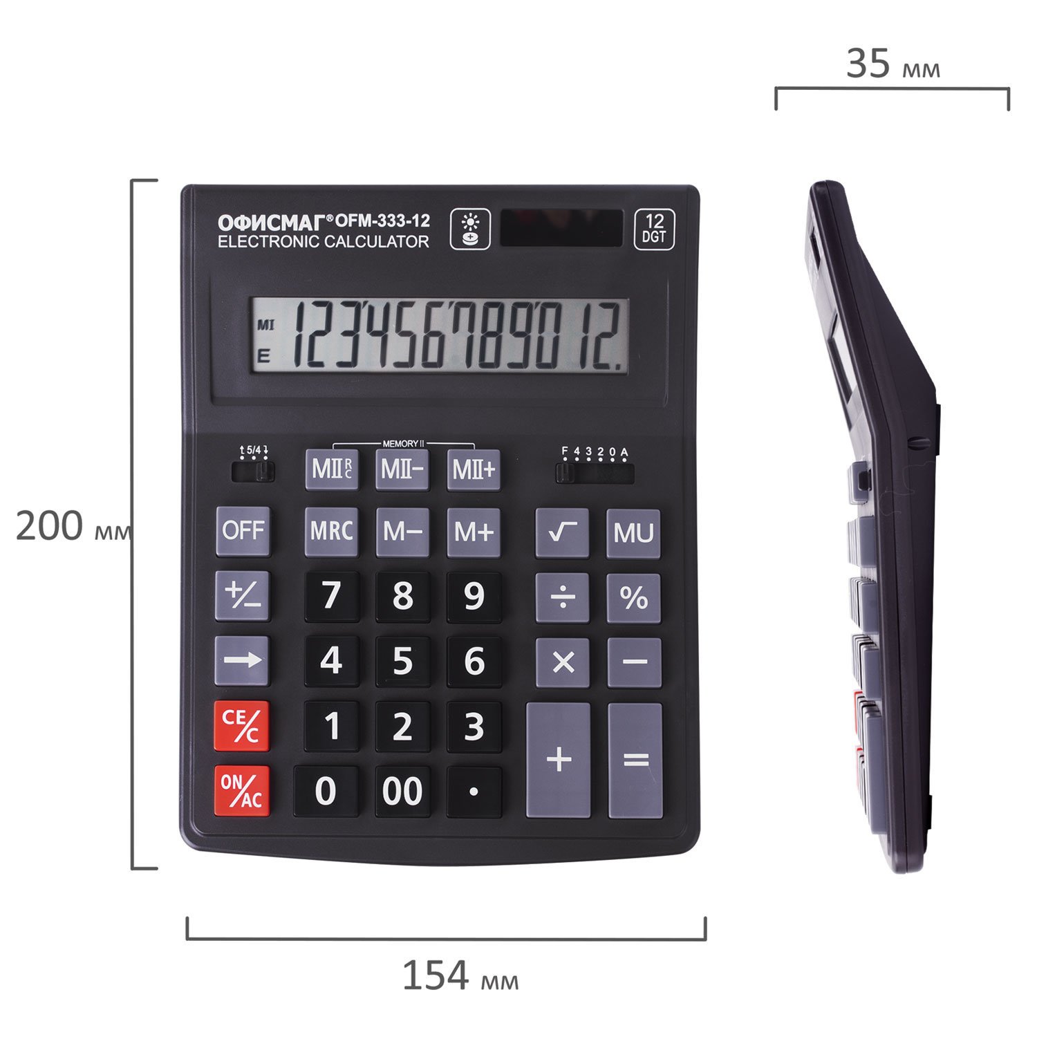 Калькулятор настольный ОФИСМАГ OFM-333 (200x154 мм) 12 разрядов, двойное питание, ЧЕРНЫЙ, 250462