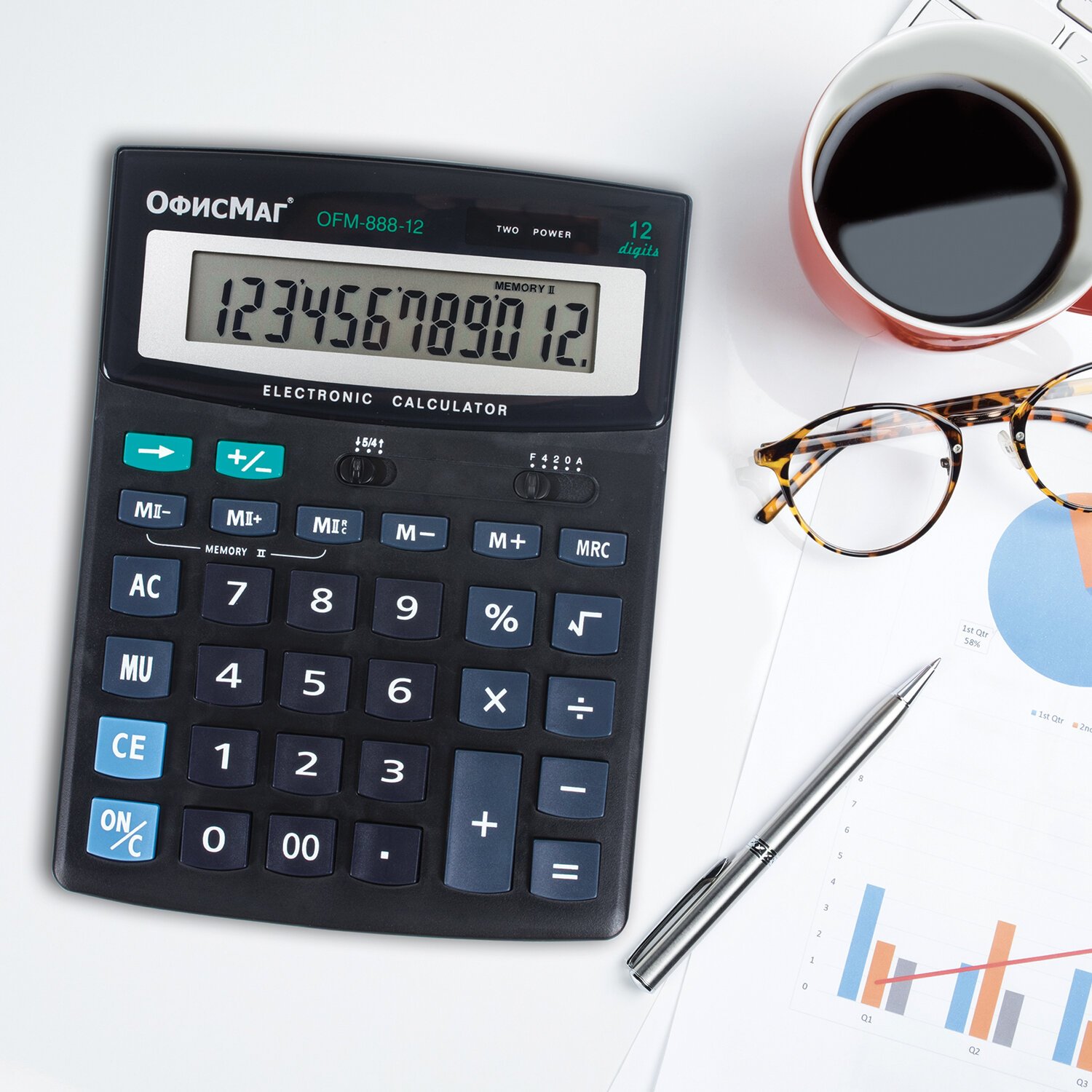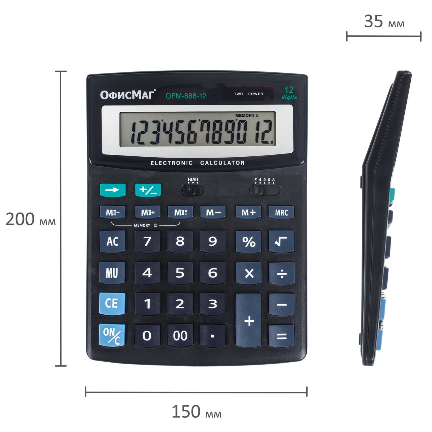 Калькулятор настольный ОФИСМАГ OFM-888-12 (200х150 мм), 12 разрядов, двойное питание, 250224