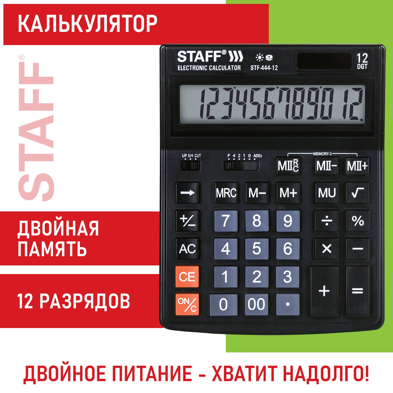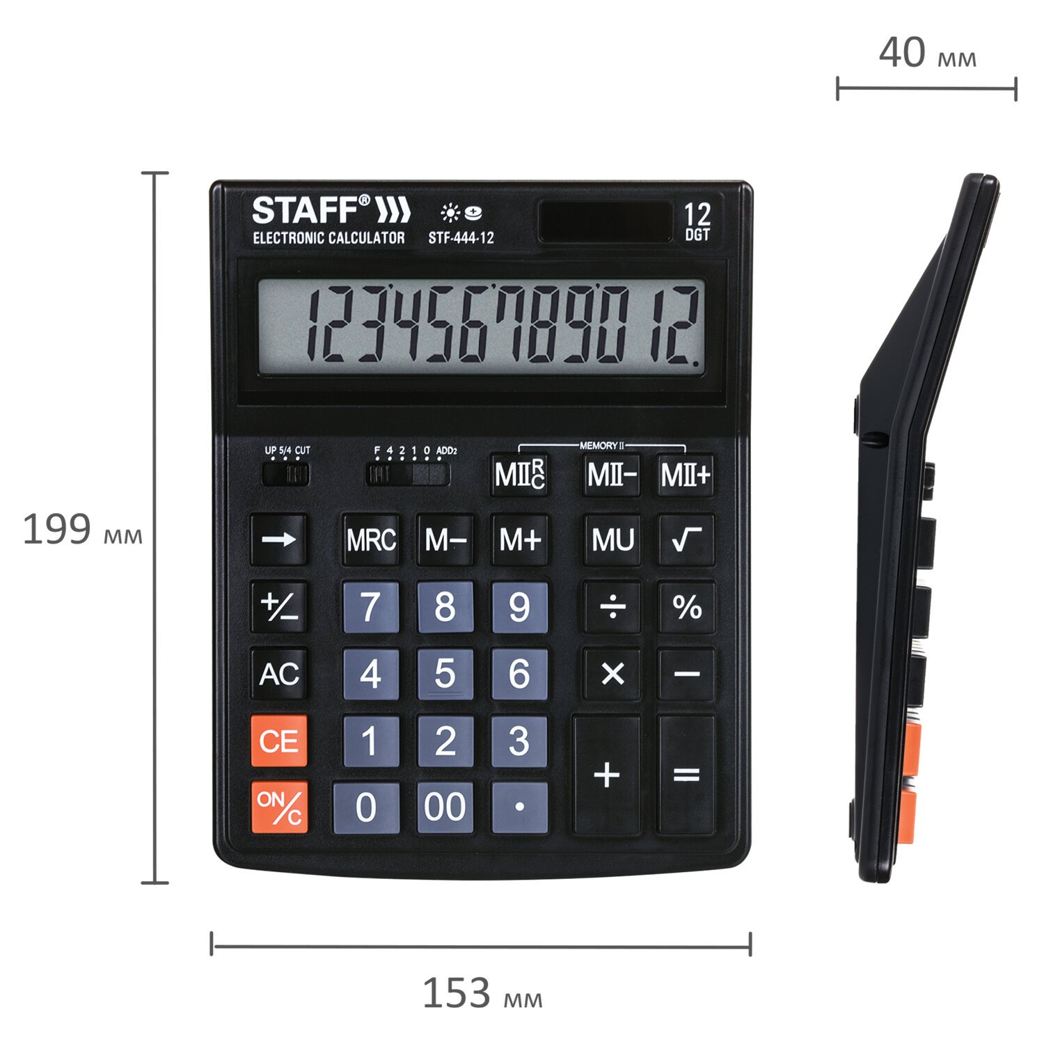 Калькулятор настольный STAFF STF-444-12 (199x153 мм), 12 разрядов, двойное питание, 250303
