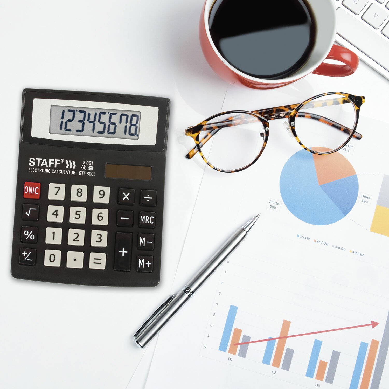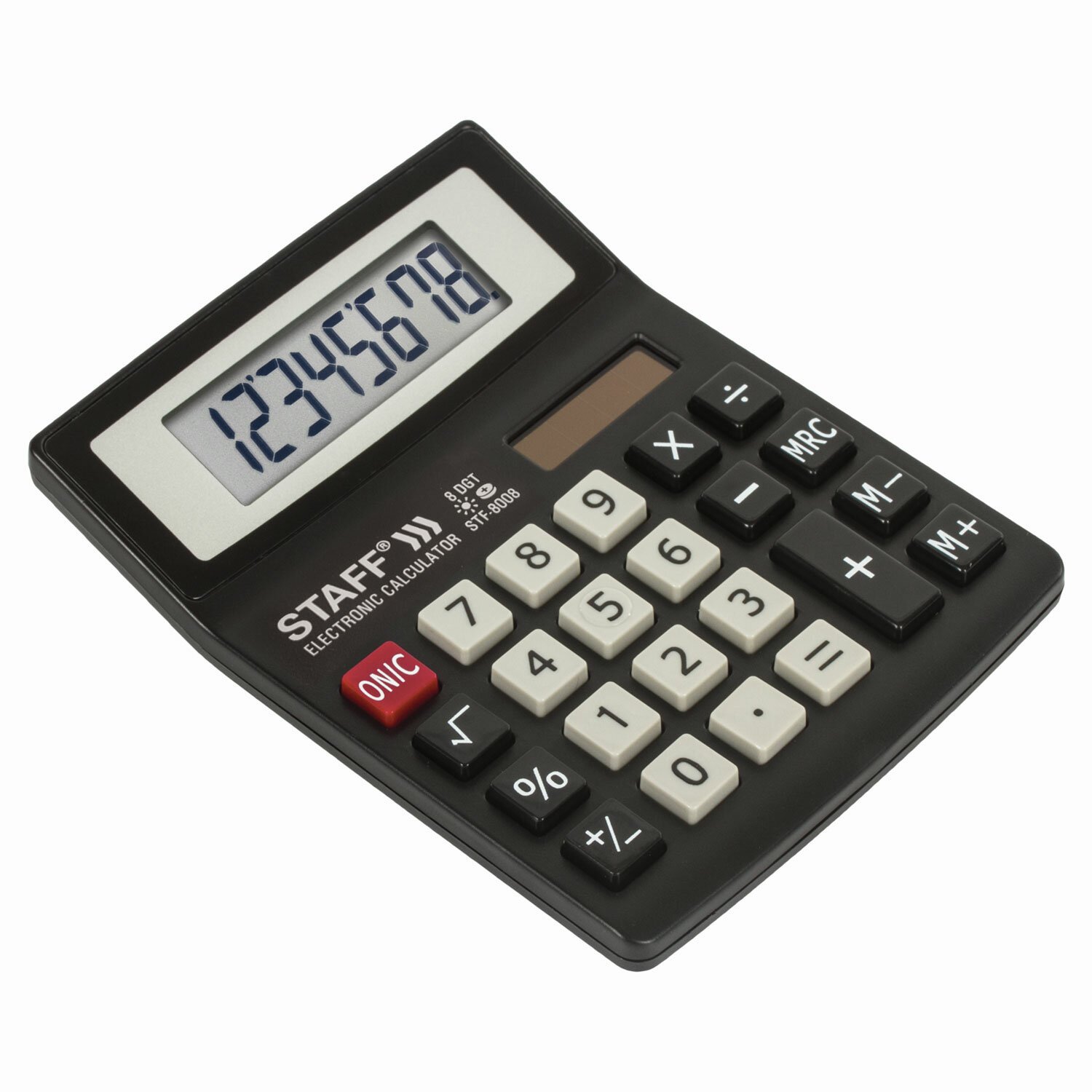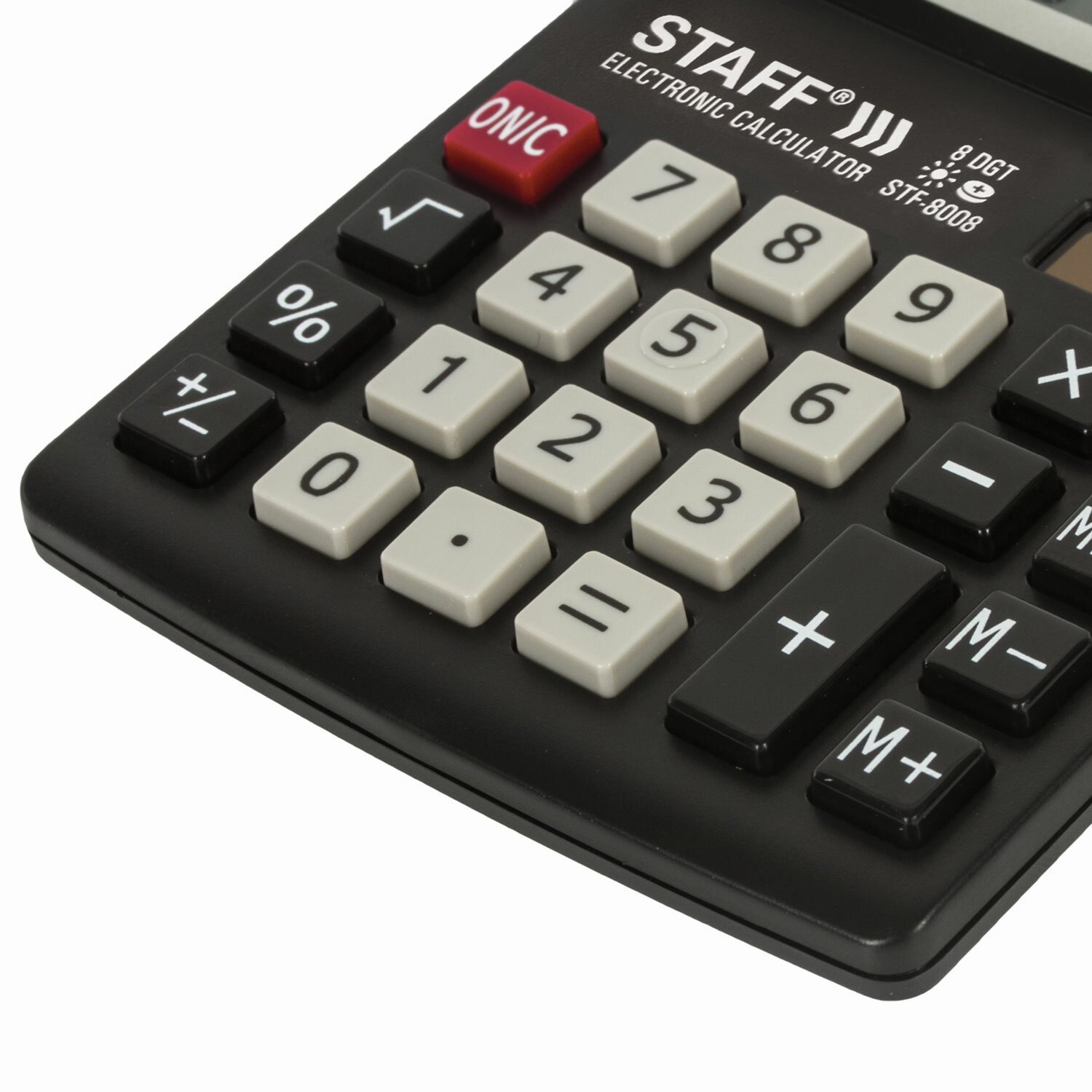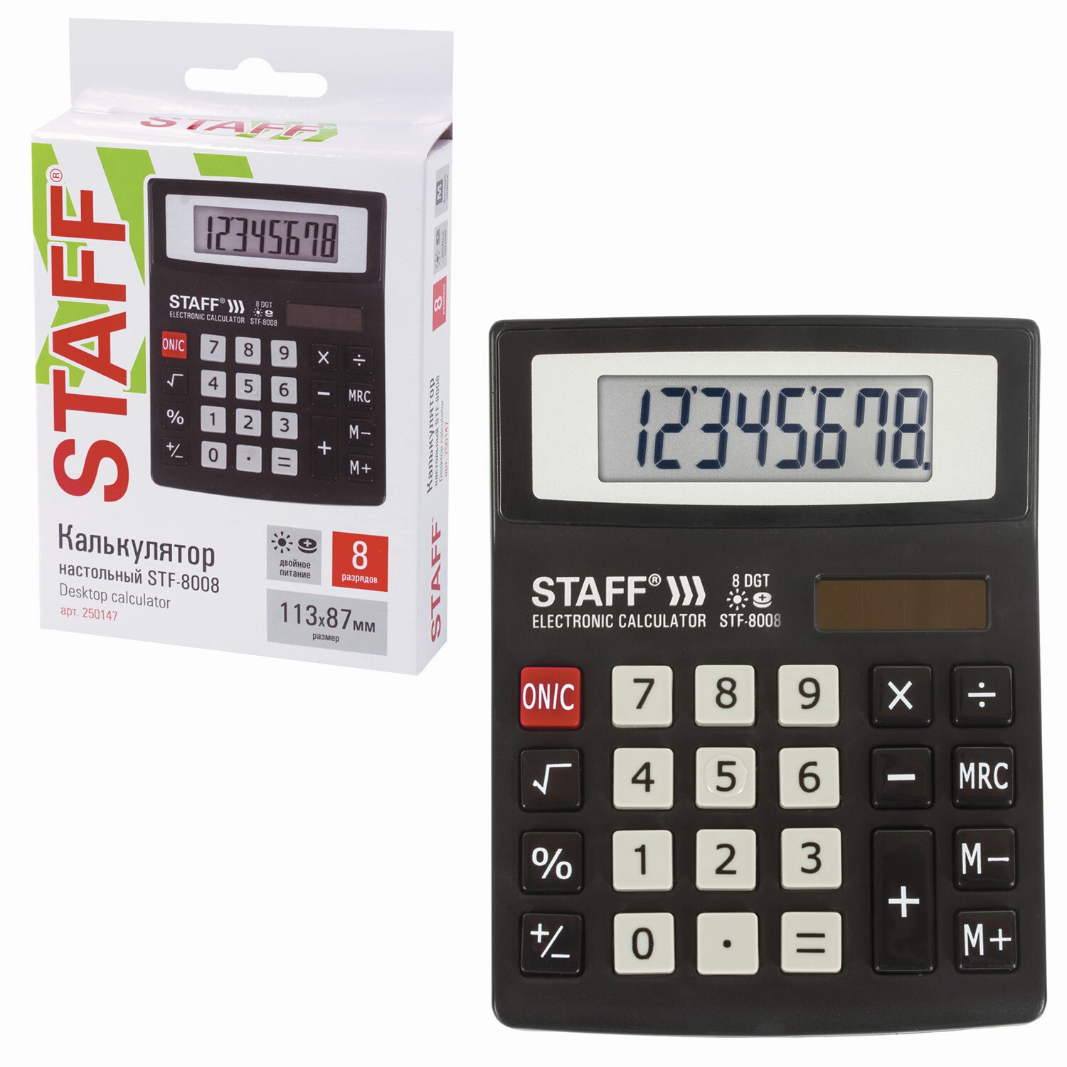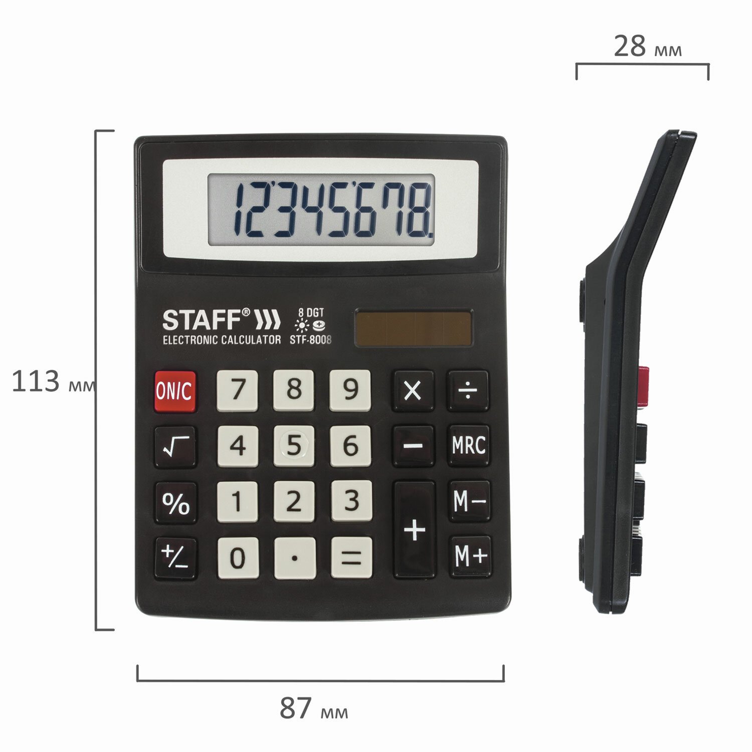 Калькулятор настольный STAFF STF-8008, КОМПАКТНЫЙ (113х87 мм), 8 разрядов, двойное питание, 250147