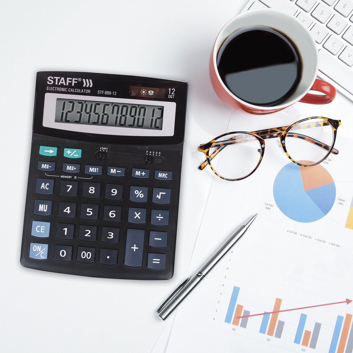 Калькулятор настольный STAFF STF-888-12 (200х150 мм), 12 разрядов, двойное питание, 250149