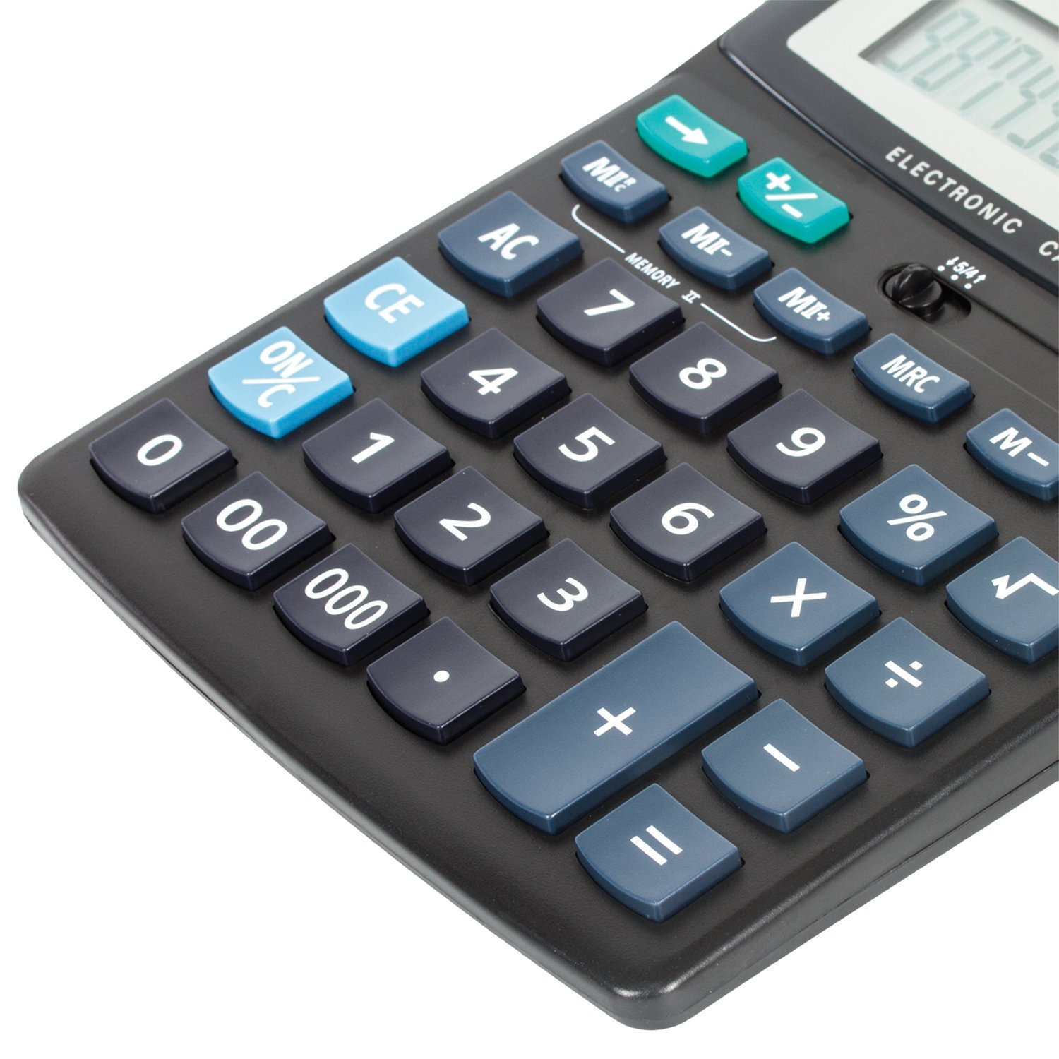 Калькулятор производит все основные арифметические действия, вычисления с двумя ячейками памяти, вычисления с процентами, извлечение квадратного корня и возведение в степень. Переключатели округления и положения десятичного знака позволяют настроить калькулятор для выполнения различных вычислительных задач. Благодаря четырнадцатиразрядному дисплею калькулятор может работать с большими значениями и с высокой точностью округления. Встроенный аккумулятор и солнечная батарея, образующие единую схему питания калькулятора, позволяют устройству работать при любом освещении. Размер - 200х150 мм.