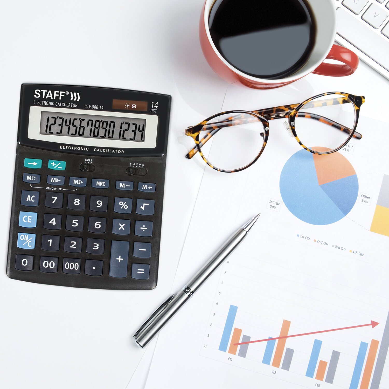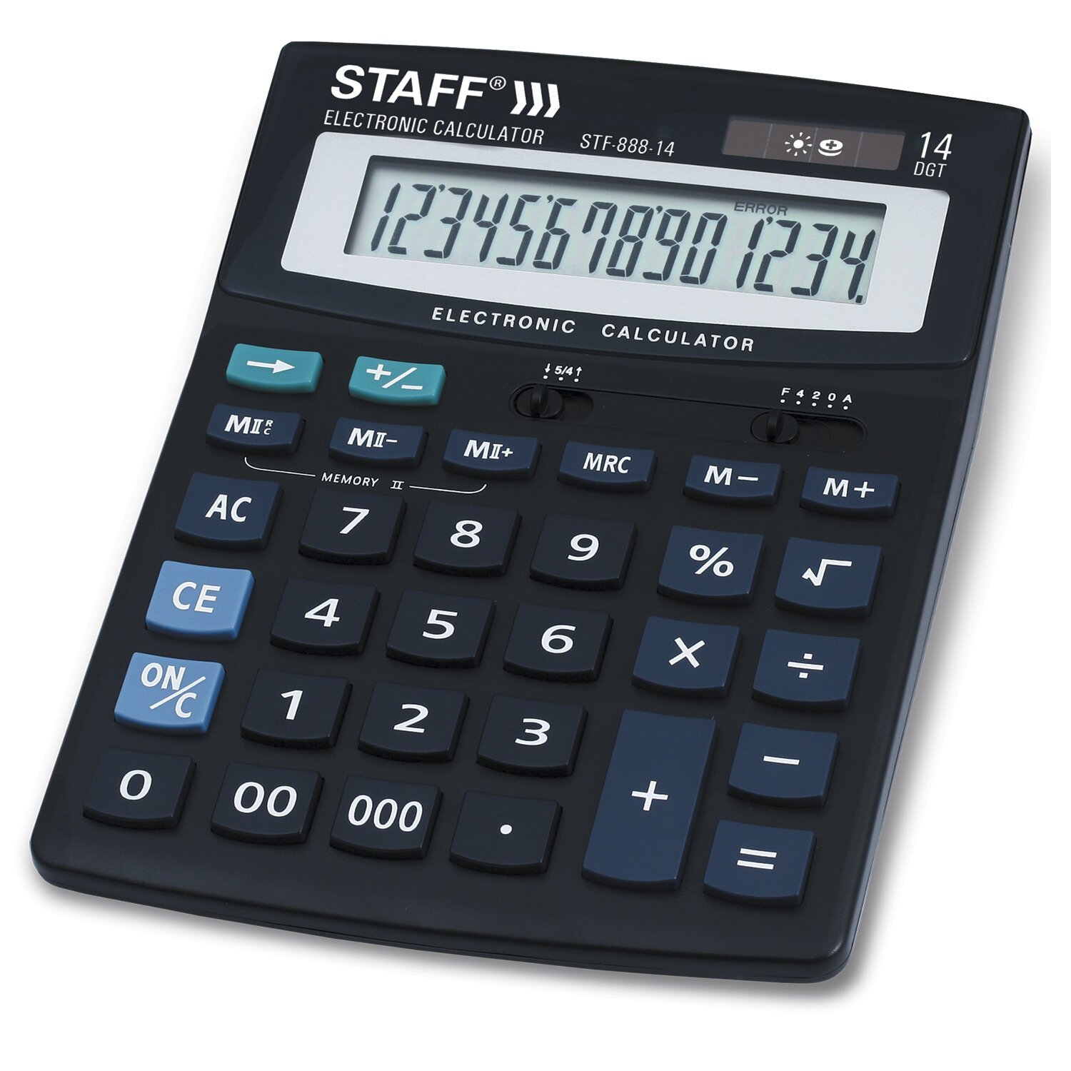 Калькулятор настольный STAFF STF-888-14 (200х150 мм), 14 разрядов, двойное питание, 250182