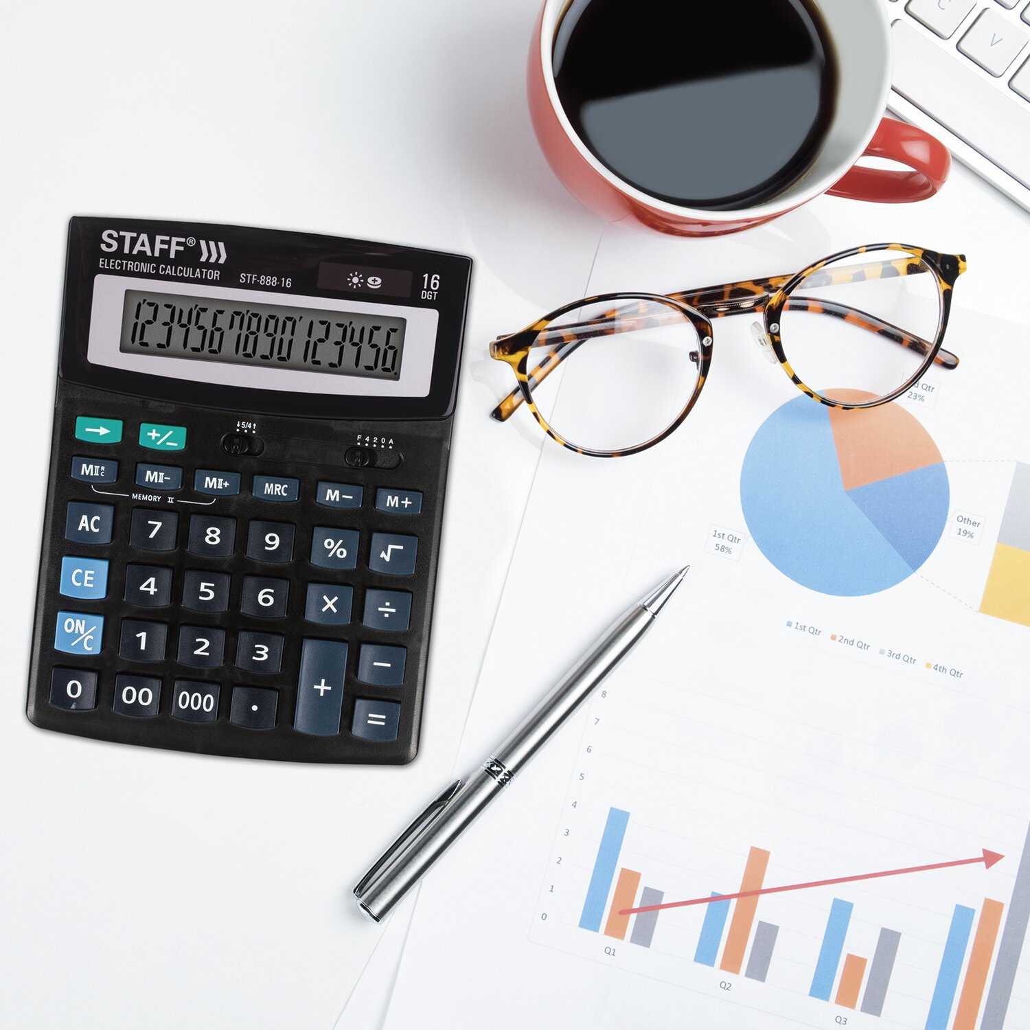 Простой в использовании и точный в расчётах настольный калькулятор STAFF STF-888-16 выполняет все необходимые вычисления на работе и дома. Кнопки нажимаются легко и тихо, позволяя работать с максимальным комфортом.