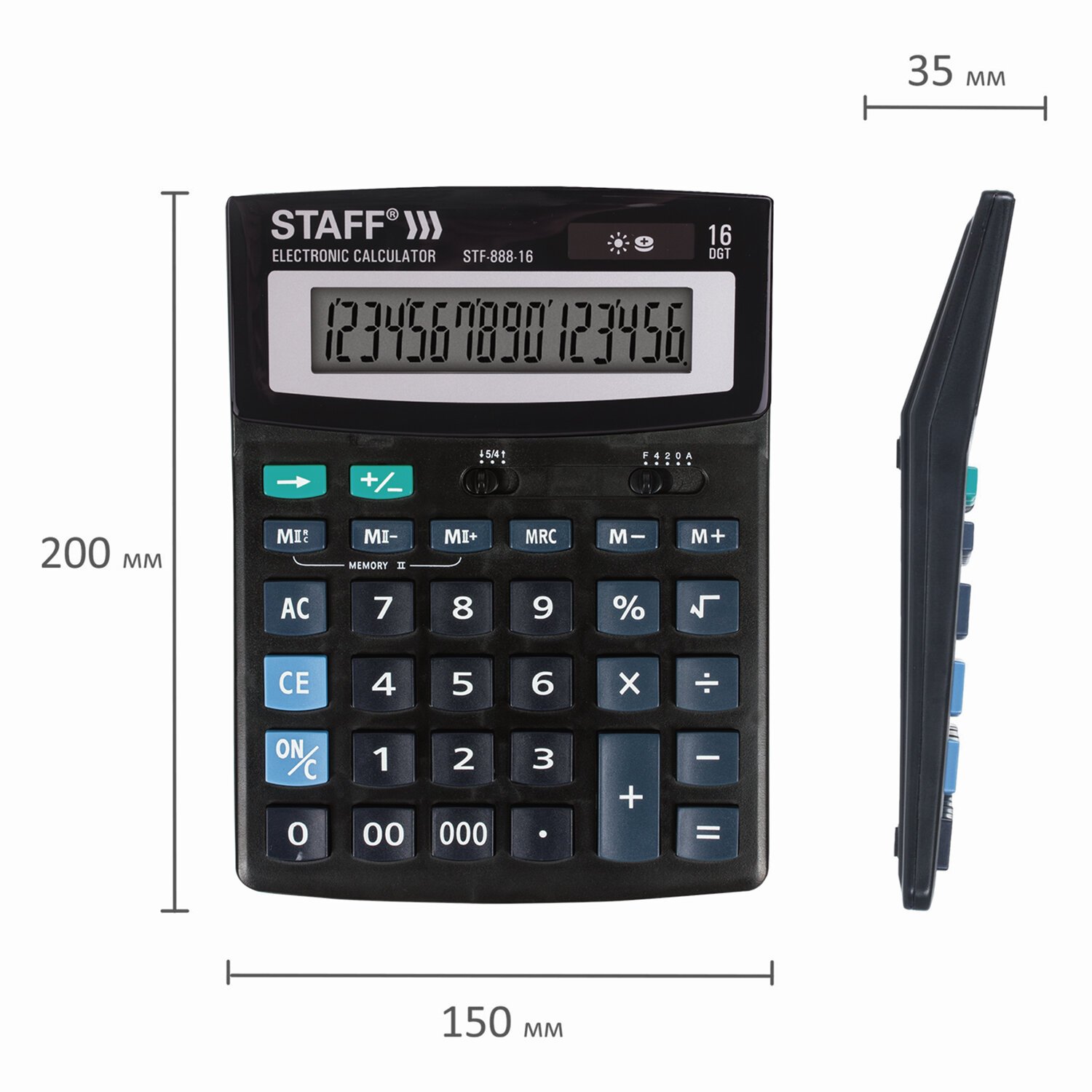 Калькулятор настольный STAFF STF-888-16 (200х150 мм), 16 разрядов, двойное питание, 250183