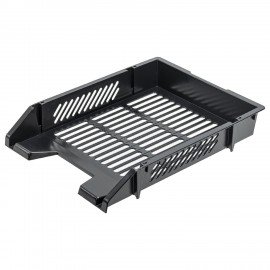Лоток горизонтальный для бумаг BRAUBERG "Basic", А4 (360х270х75 мм), с пазами, сетчатый, черный, 237011