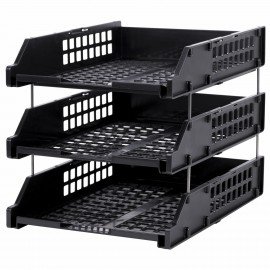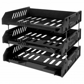 Лотки горизонтальные для бумаг, КОМПЛЕКТ 3 шт., 340х270х70 мм, черный, BRAUBERG "Office", 237255