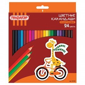 Карандаши цветные ПИФАГОР "ЖИРАФ", 24 цвета, шестигранные, 181252