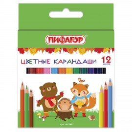Карандаши цветные ПИФАГОР "ЛЕСНЫЕ ЖИТЕЛИ", 12 цветов, шестигранные, 181334