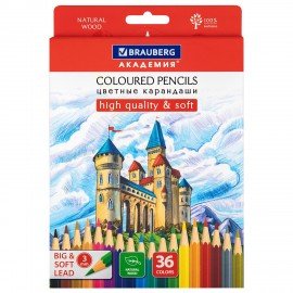 Карандаши цветные мягкие BRAUBERG АКАДЕМИЯ, 6 цветов, шестигранные, грифель 3 мм, натуральное дерево, 181863