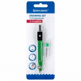 Готовальня BRAUBERG "Klasse", 2 предмета: циркуль 115 мм, пенал с грифелем, блистер, 210318