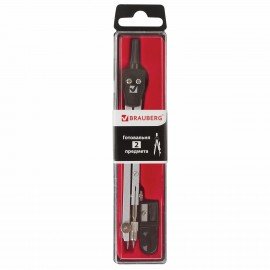 Готовальня BRAUBERG "Klasse", 2 предмета: циркуль 110 мм с подстраиваемой иглой, грифель, блистер, 210319