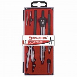Готовальня BRAUBERG "Klasse", 7 предметов: циркуль+кронциркуль, рейсфедер + держатель, 2 вставки, грифель, 210344