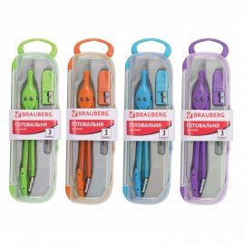 Готовальня BRAUBERG "Klasse", 3 предмета: циркуль 115 мм с колпачком, грифель, точилка, пенал с подвесом, 210330