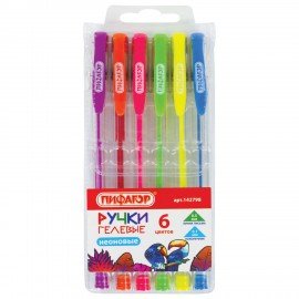 Ручки гелевые BRAUBERG "Jet", НАБОР 6 ЦВЕТОВ, НЕОНОВЫЕ, узел 0,7 мм, линия письма 0,5 мм, 141034