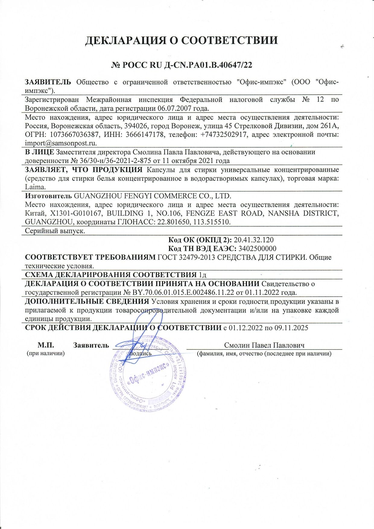 Капсулы подходят для стирки цветных изделий из хлопчатобумажных, льняных, синтетических тканей и тканей из смешанных волокон (кроме шелка и шерсти).