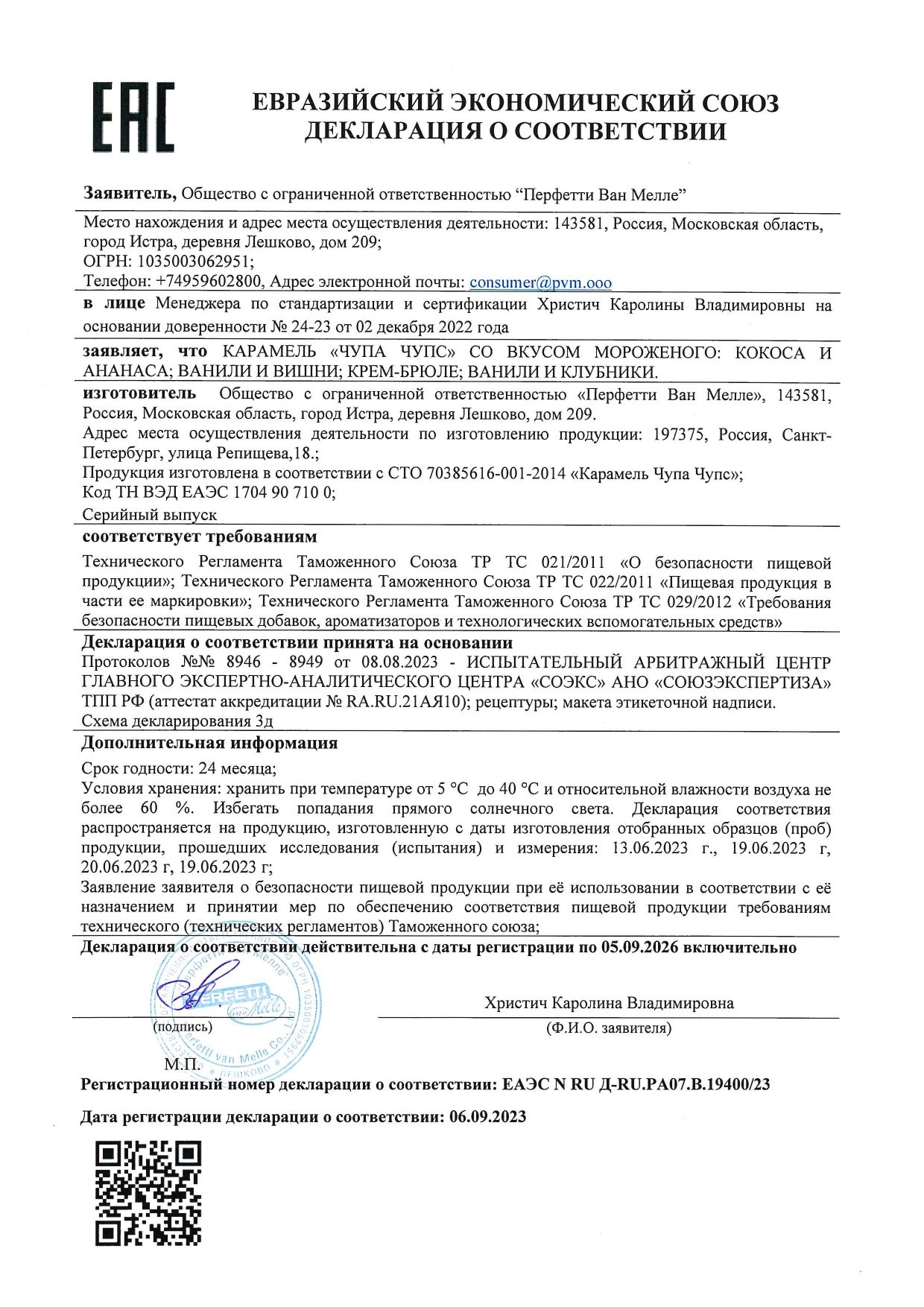 | Фирма-производитель | ООО «Перфетти Ван Мелле» |