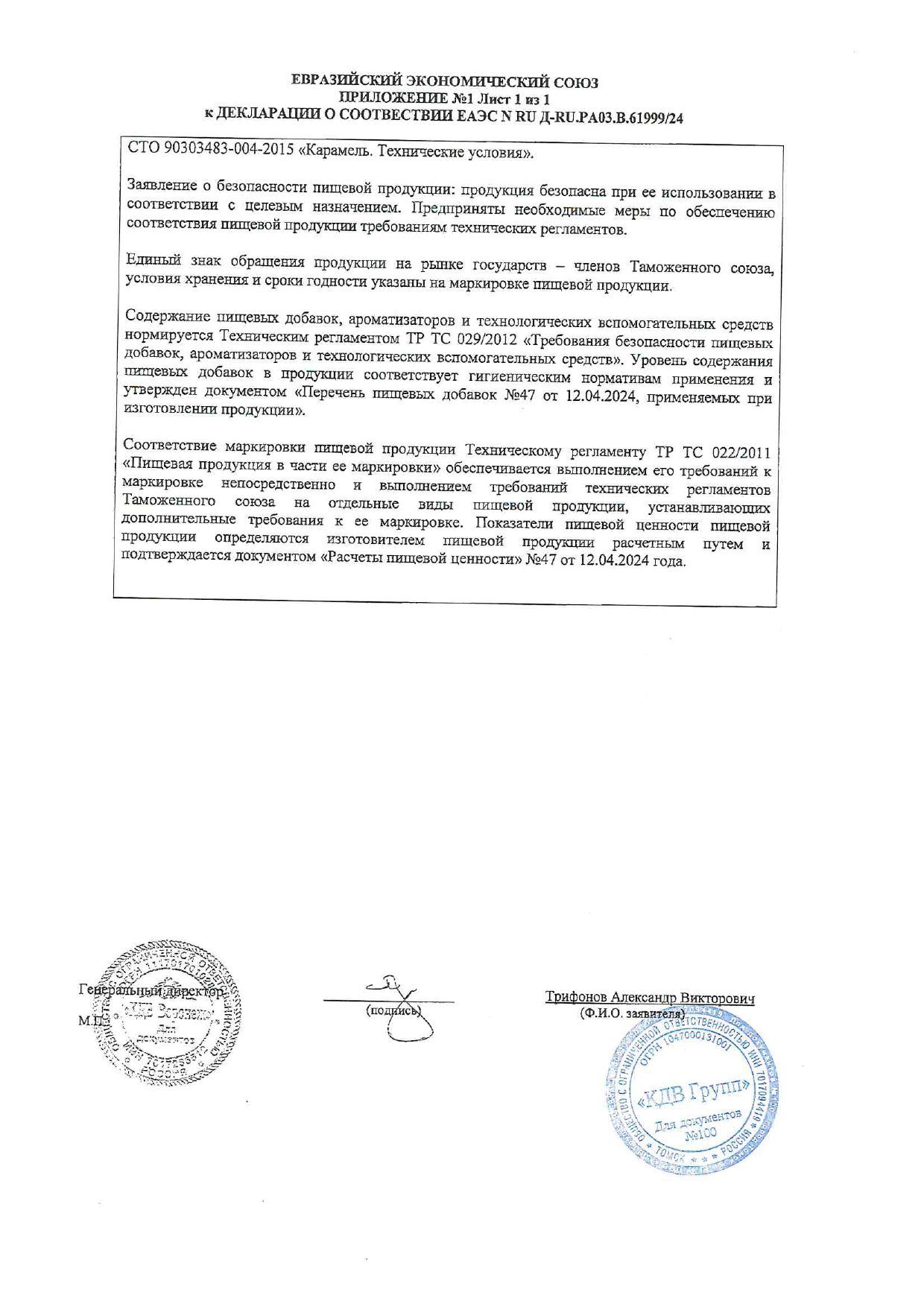 Патока, сахар, регулятор кислотности: лимонная кислота; ароматизаторы, концентрированный сок фиолетовой моркови, красители: куркумин, паприка "Оранжевый". Может содержать следы диоксида серы, продуктов переработки сои, молока.