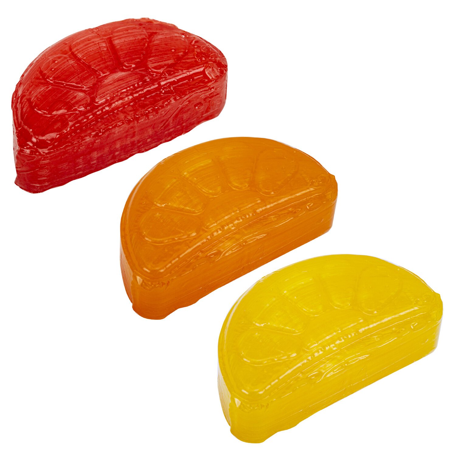 Леденцы со вкусами апельсина, лимона и грейпфрута в форме цитрусовых долек. Восхитительное сочетание легких цитрусовых и карамельных нот.