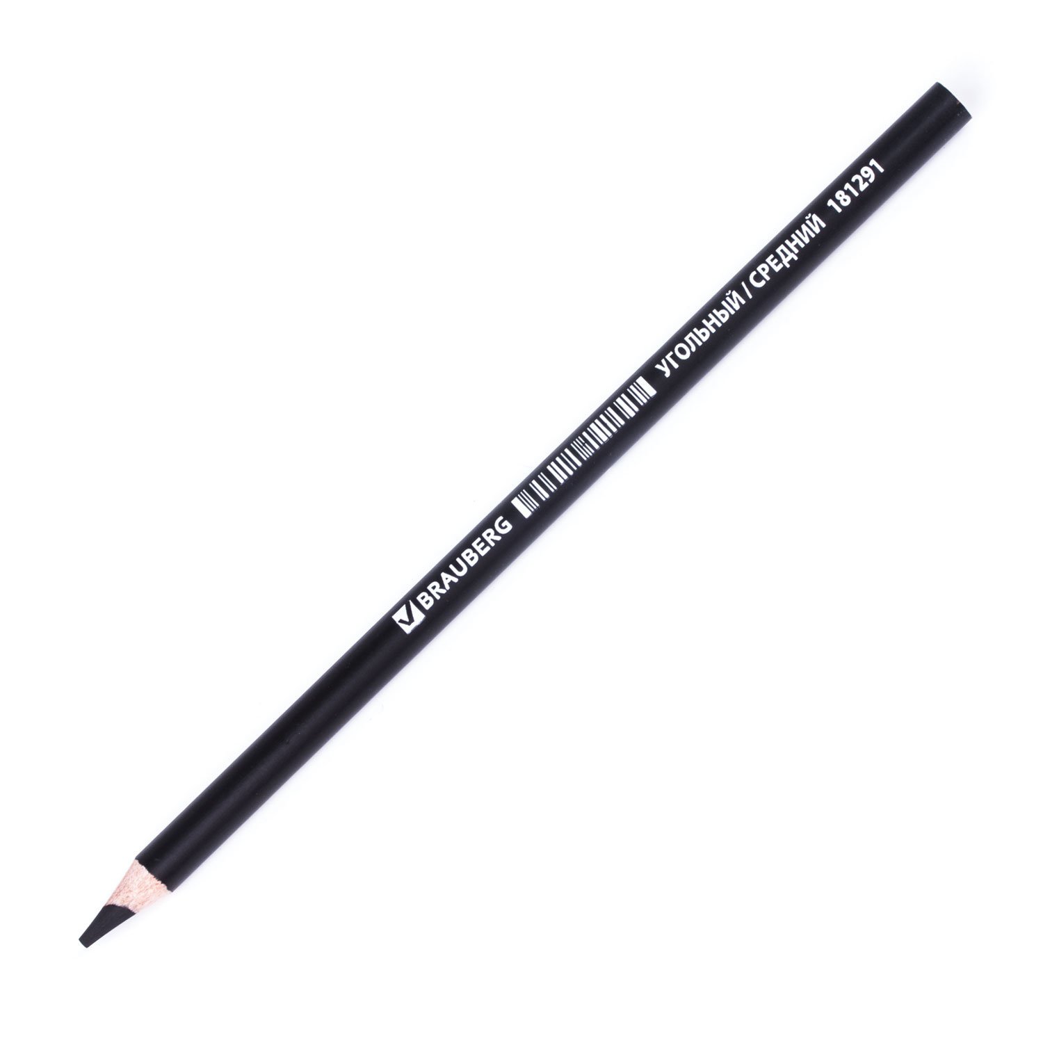 Карандаш (1 штука) угольный BRAUBERG ART CLASSIC, СРЕДНИЙ, круглый, корпус черный, заточенный, 181291