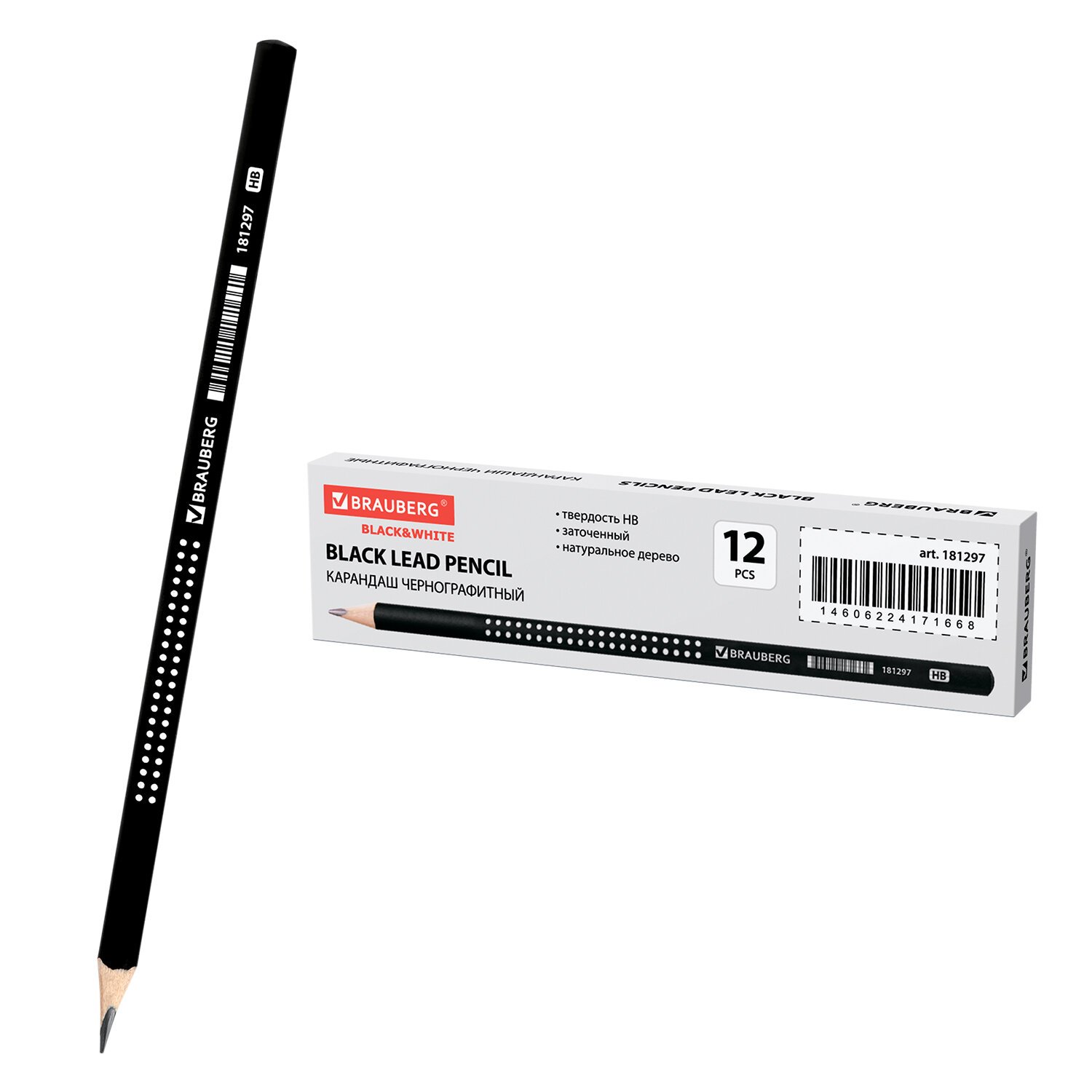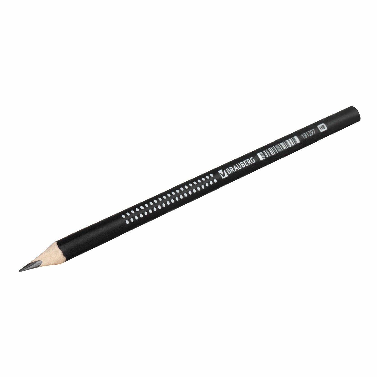 Карандаш чернографитный BRAUBERG, 1 шт., "Black&White", HB, трехгранный, корпус черный, заточенный, 181297
