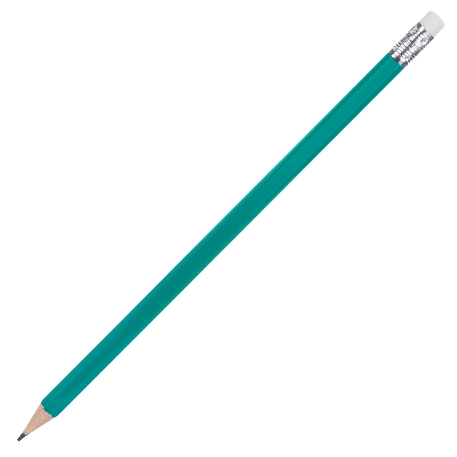 Изготовлен из высококачественного пластика, оснащен ластиком. Имеет шестигранное сечение. Карандаш длиной 175 мм легко точится и не крошится. Обладает средней степенью твердости – HB. Диаметр грифеля - 2,2 мм. Выполнен в зеленом цвете. Поставляется заточенным.