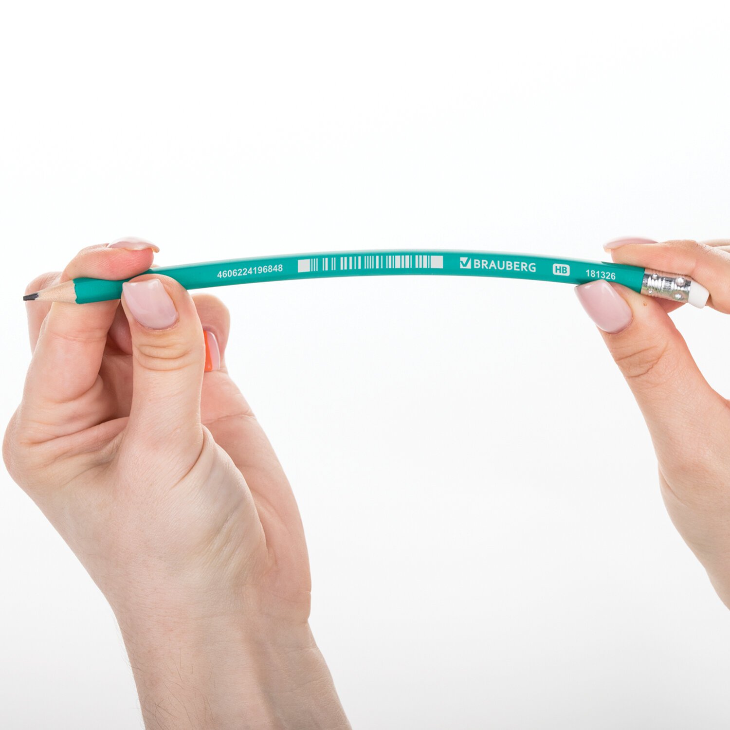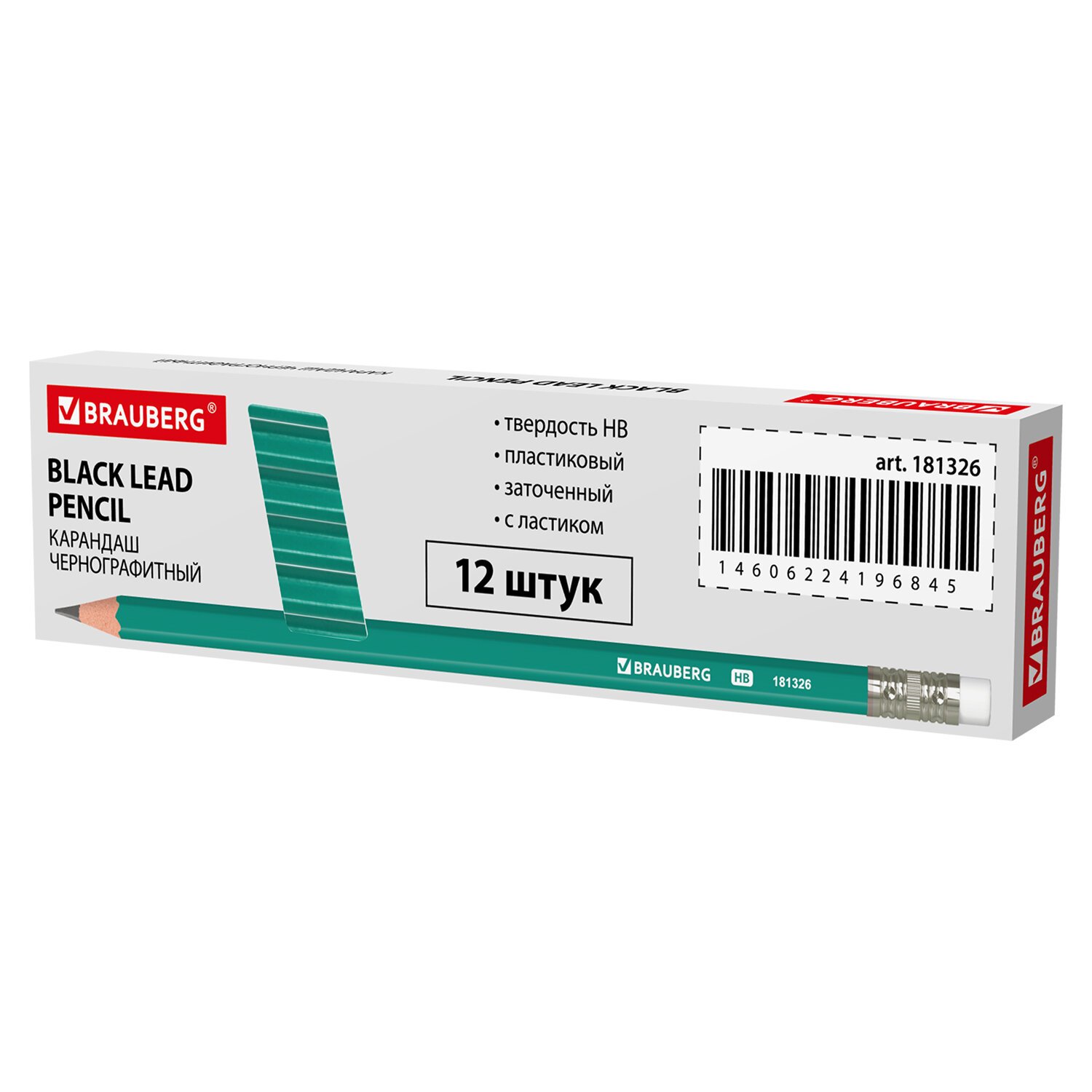 Карандаш чернографитный BRAUBERG, 1 шт., "Grass", НВ, с резинкой, пластиковый, корпус зеленый, 181326